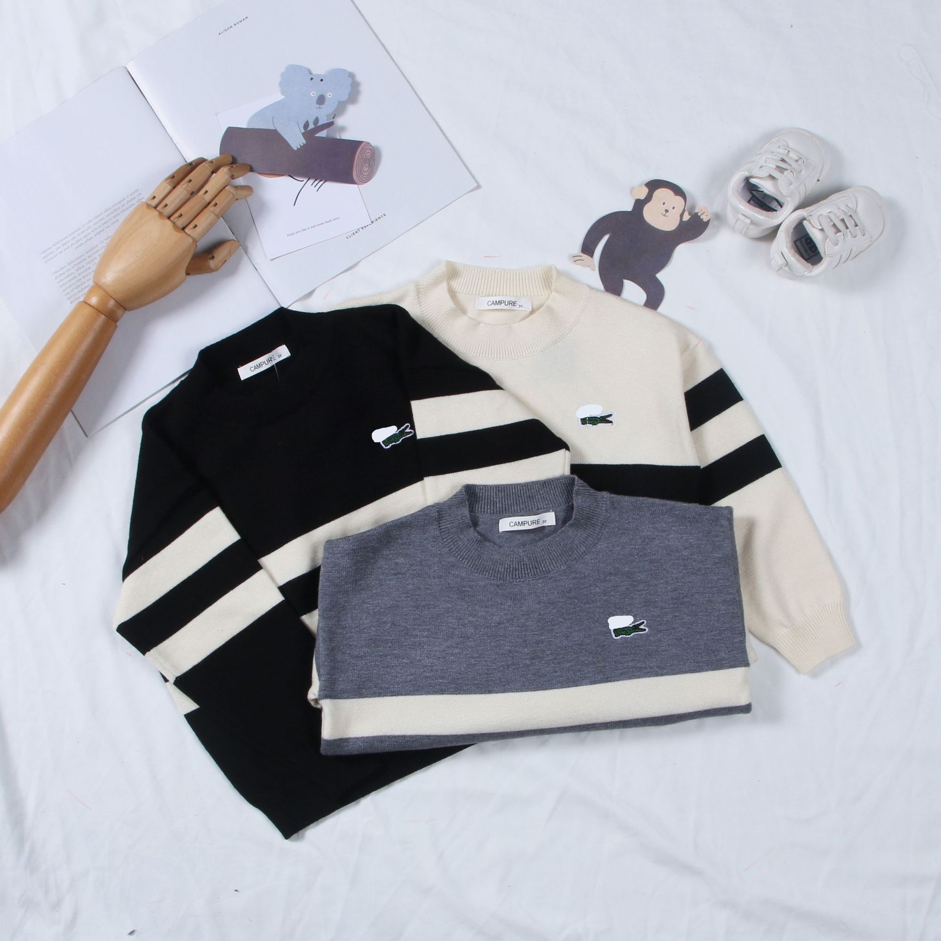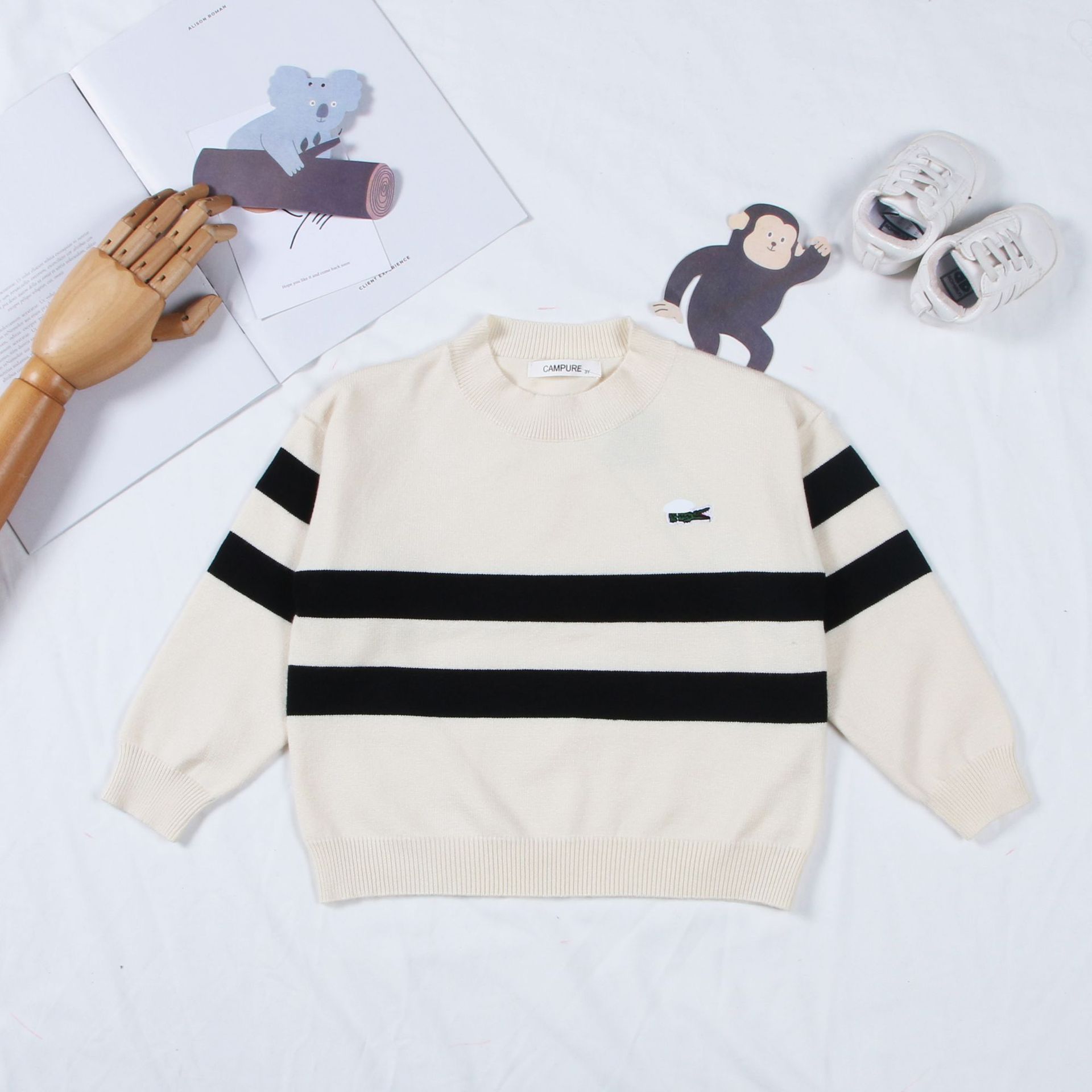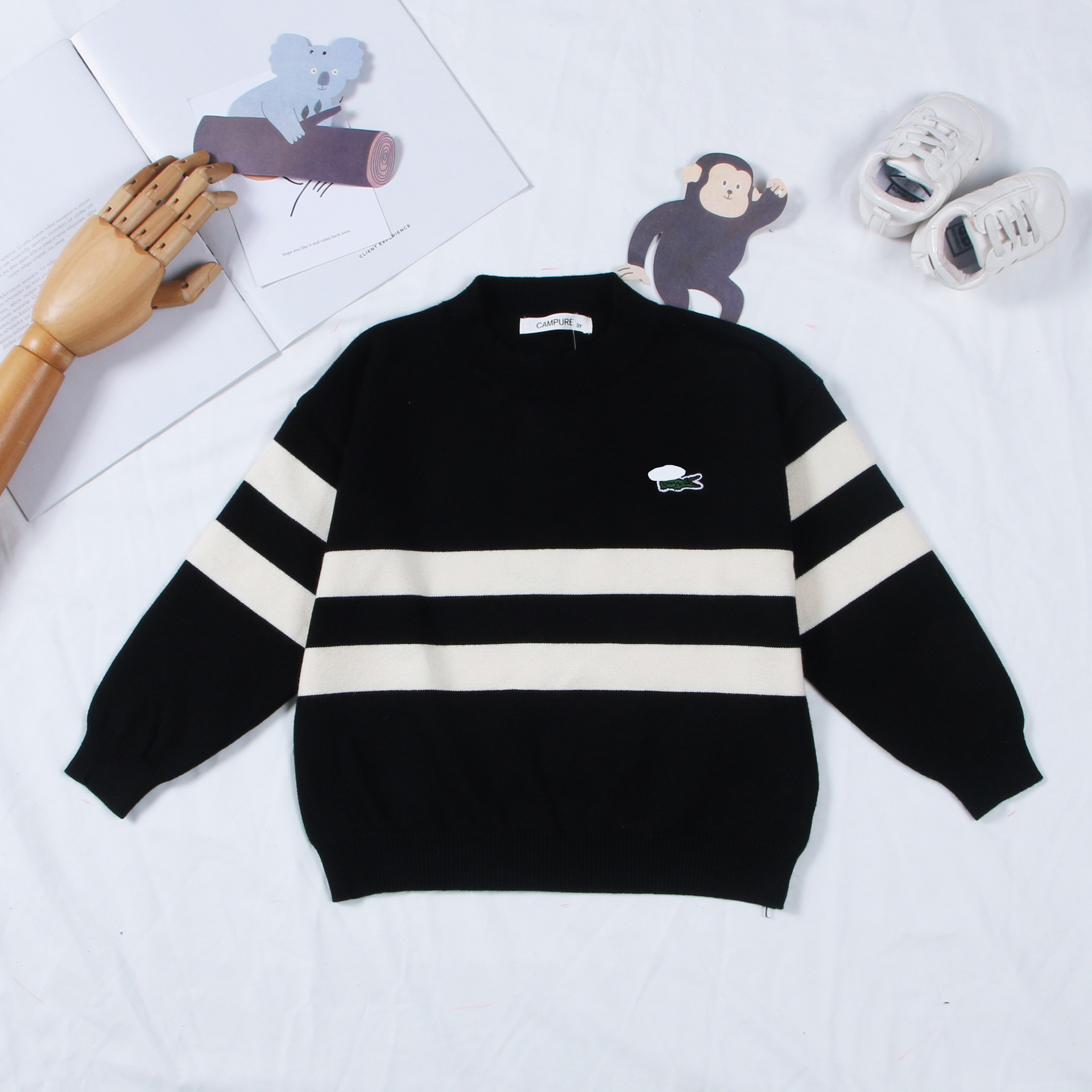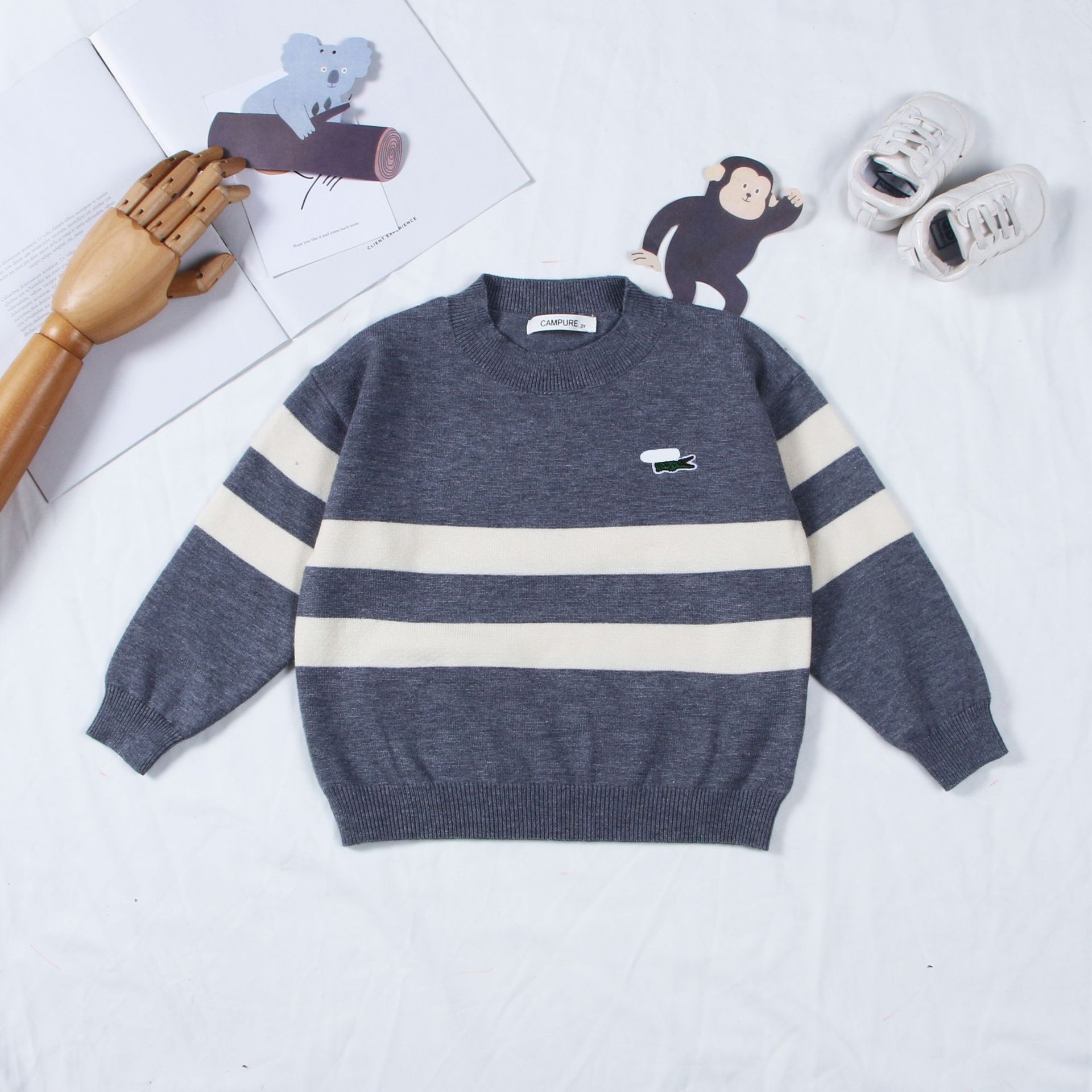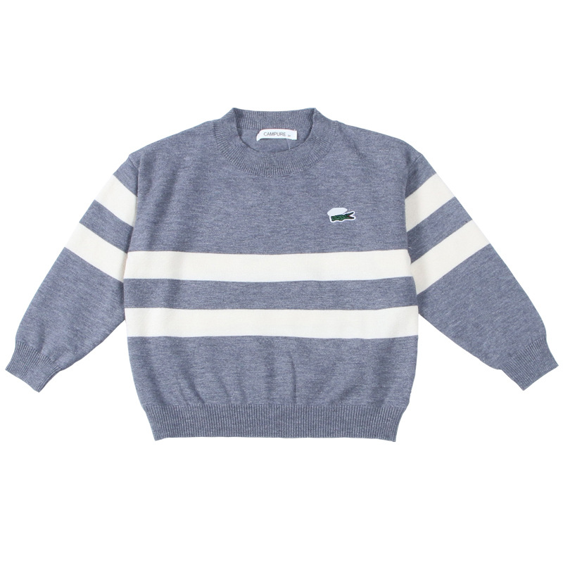 Детский свитер 2024 в корейском стиле, новая осенне-зимняя модель, вышитый полосатый свитер для мальчиков и девочек, детский трикотаж с круглым вырезом, трансграничная торговля