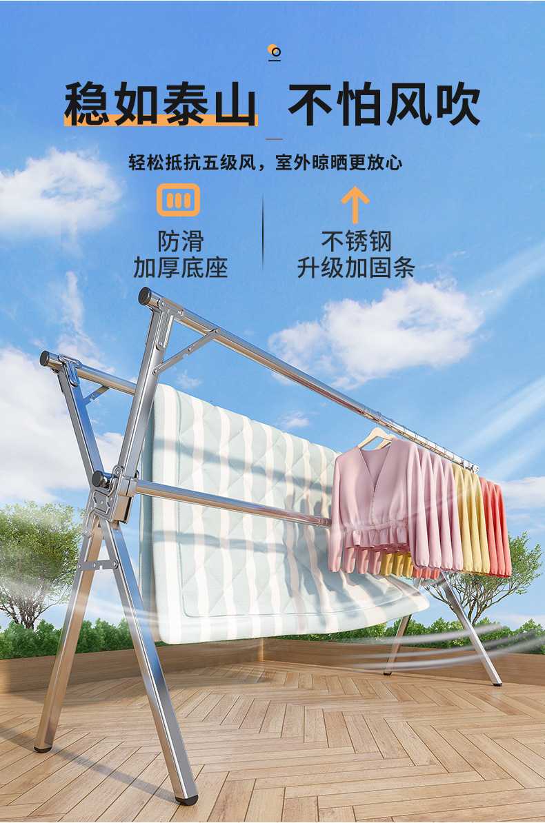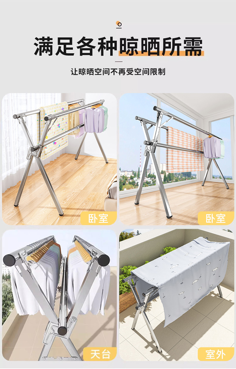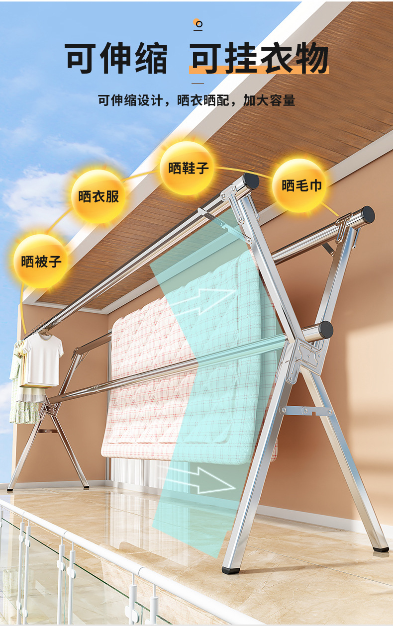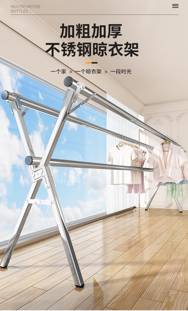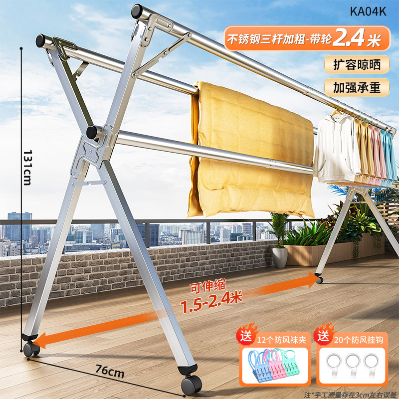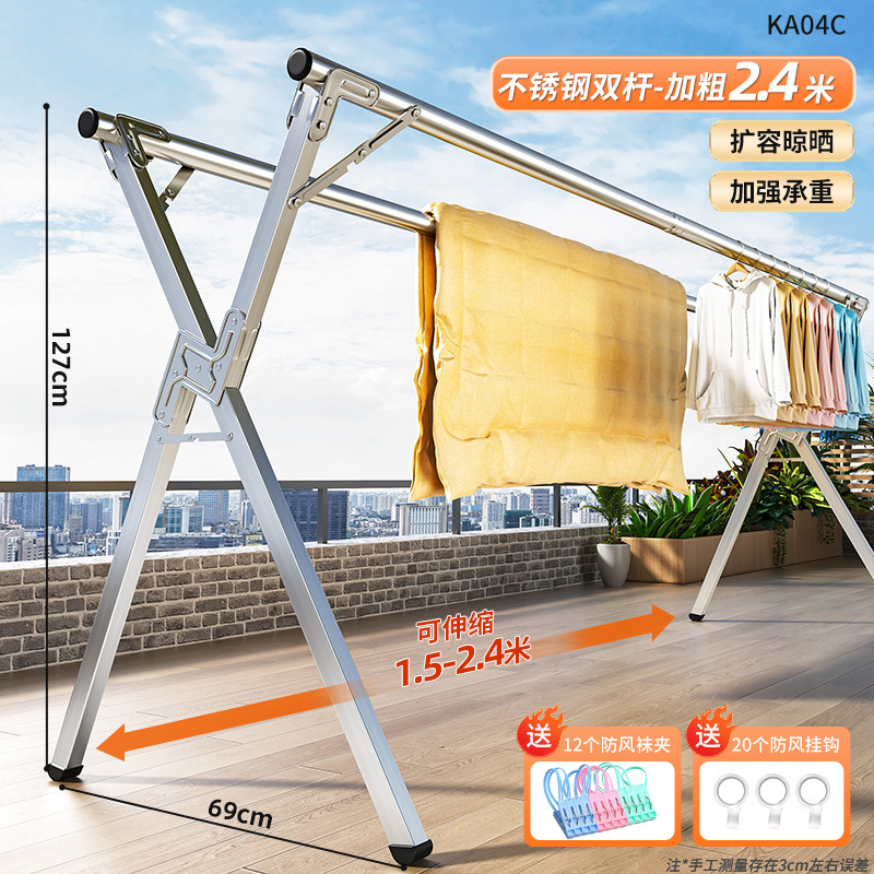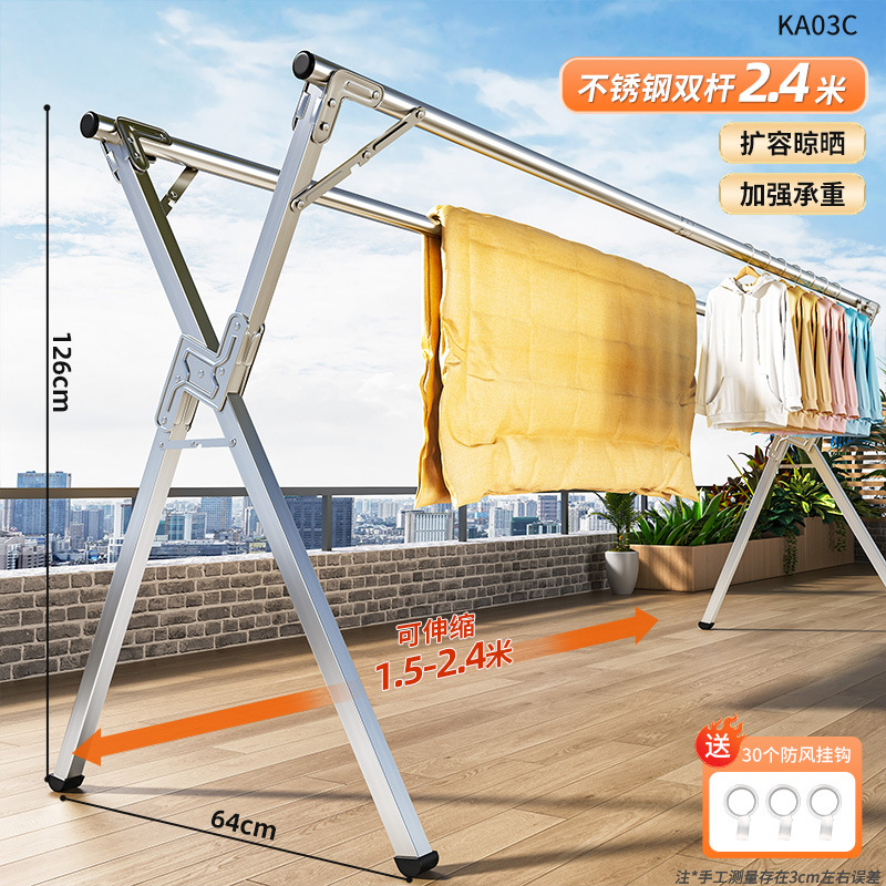 Сушилка из нержавеющей стали напольная Складная внутренняя и наружная двухполюсная стеганая стойка телескопическая Балконная Мобильная охлаждающая стойка