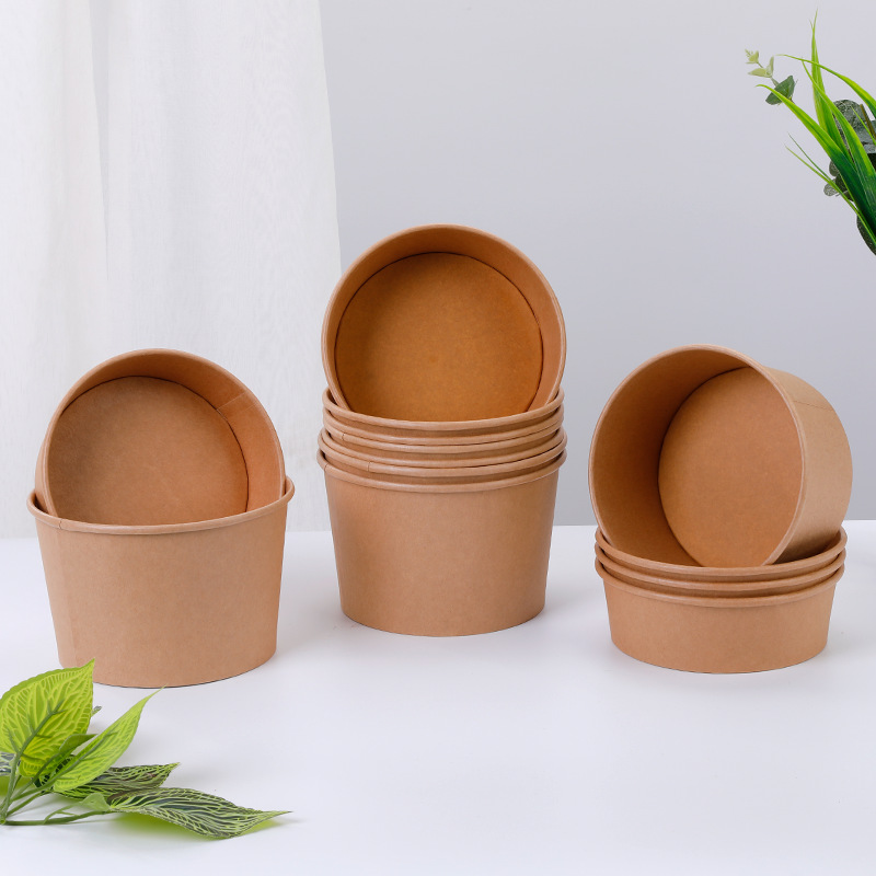 Шар из крафт-бумаги Утолщенная одноразовая упаковочная коробка для фруктов на вынос Круглая миска для супа Салатник Коробка для завтрака с легкой едой Коробка на вынос