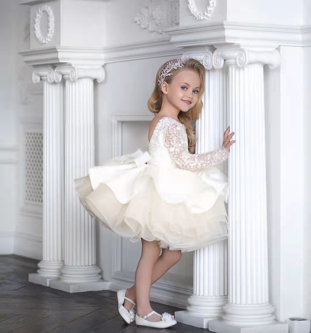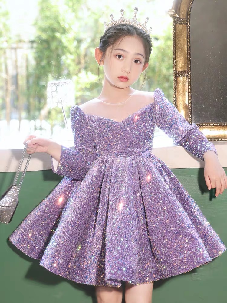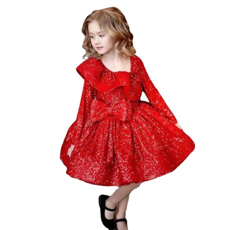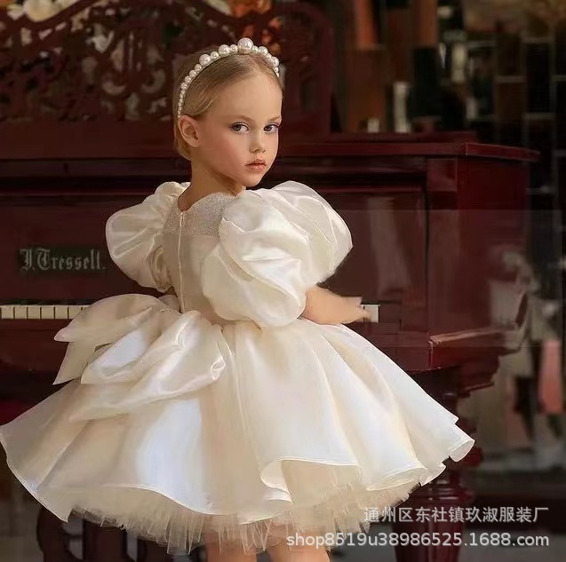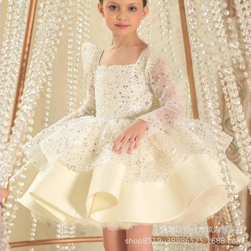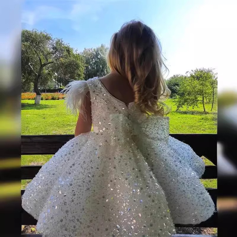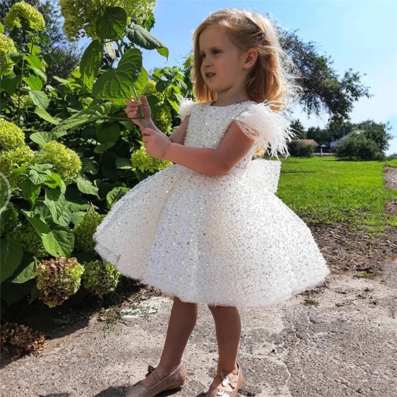 Белое платье принцессы с пайетками для маленьких детей с бантом, юбка-пачка, детское вечернее платье для дня рождения