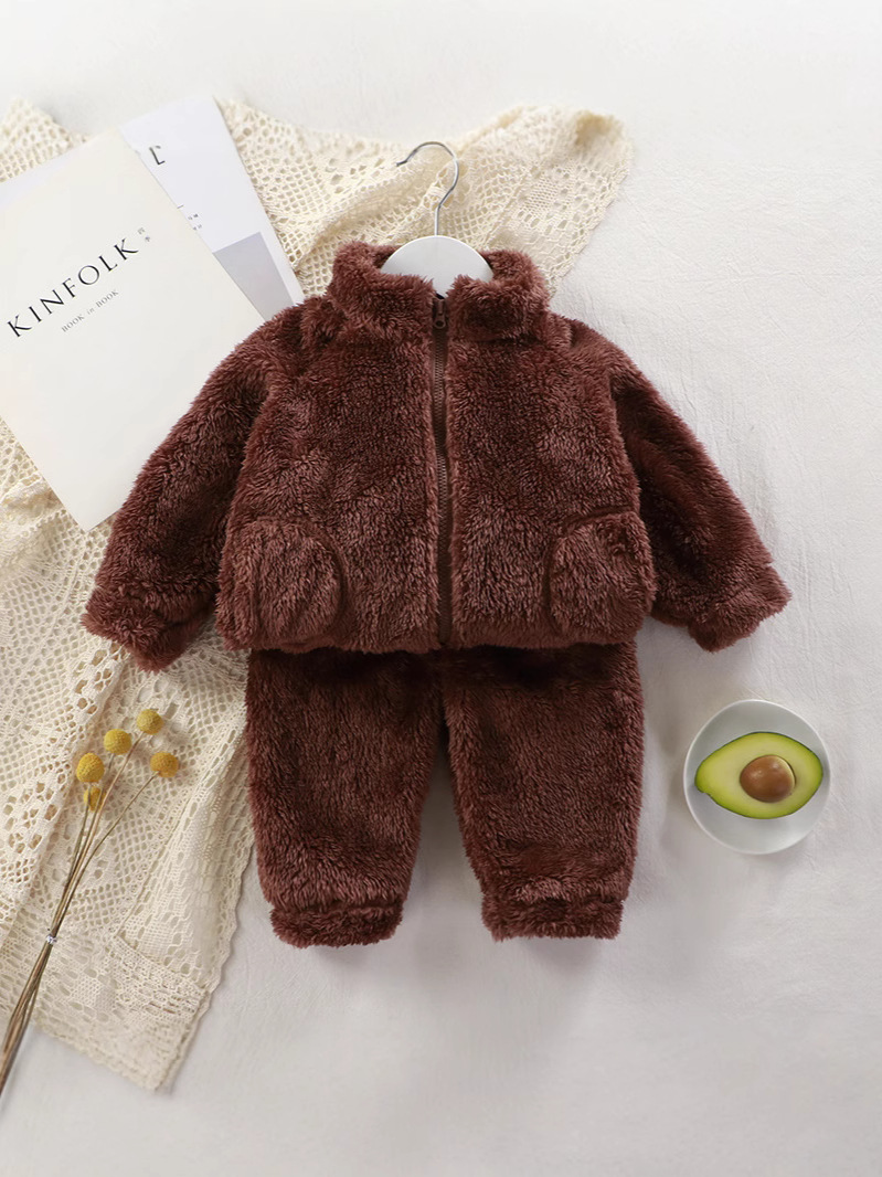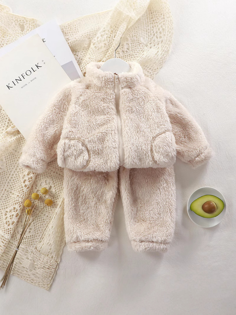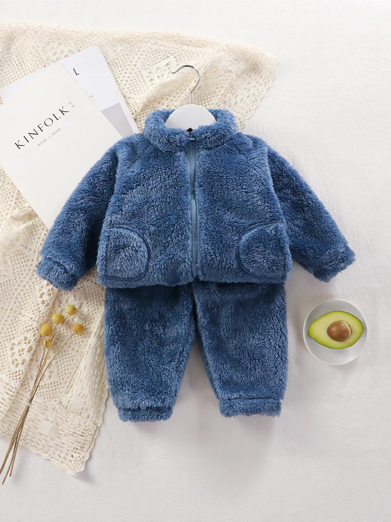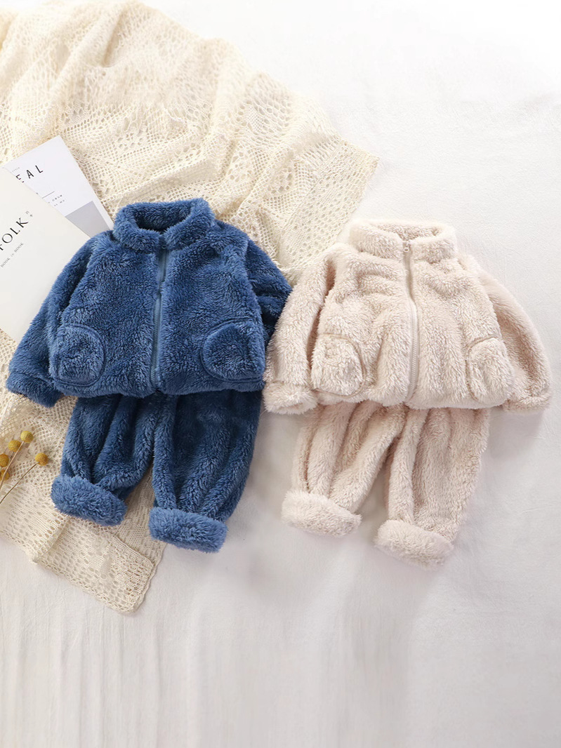 Детский костюм на осенне-зимнем стиле, плюшевая теплая одежда для мальчиков и девочек, однотонная модная домашняя одежда, комплект из двух предметов на молнии