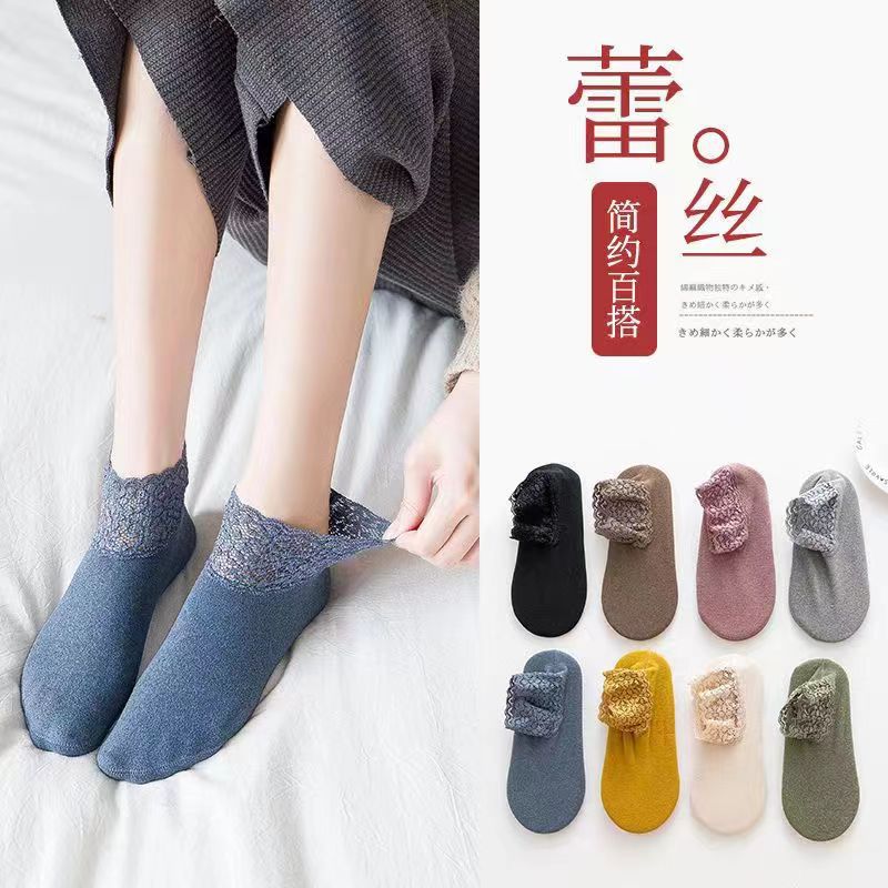Носки DeRong, женские осенние и зимние теплые утолщенные кружевные носки, короткие носки, свободные носки для сна, носки-тапочки