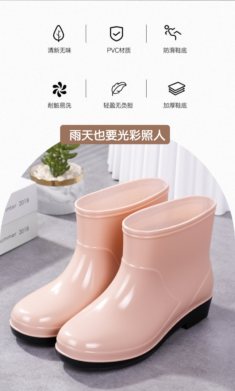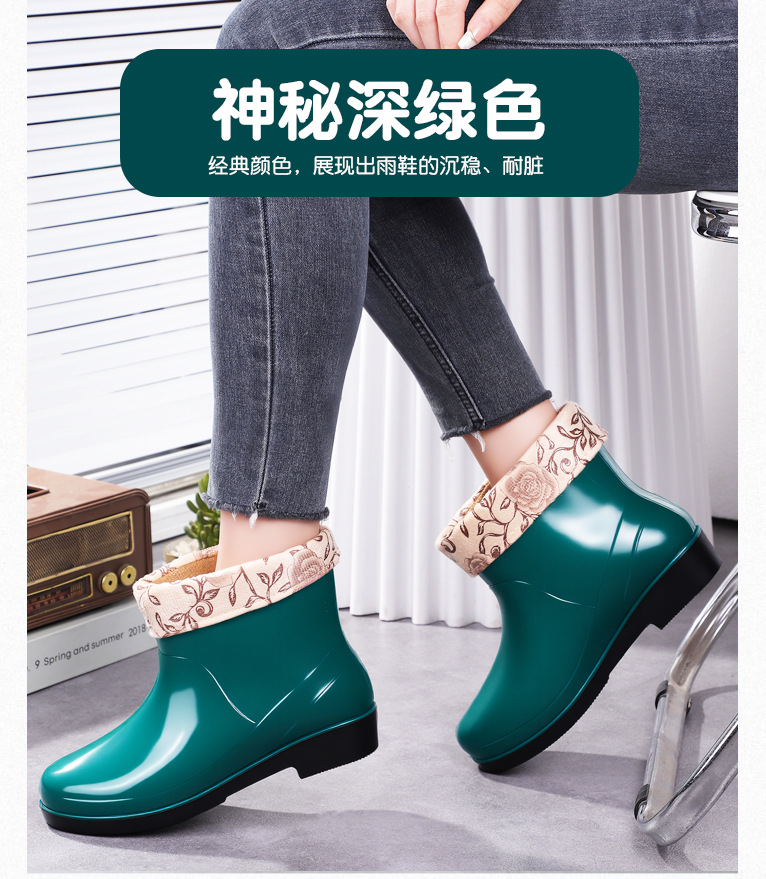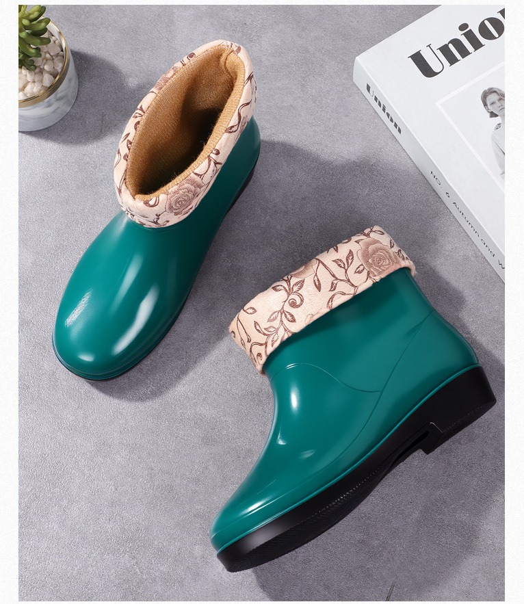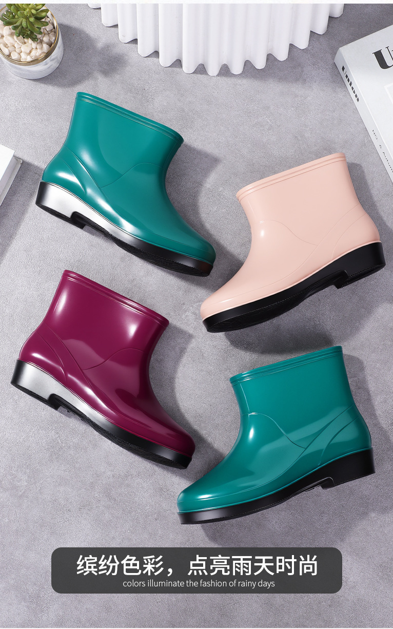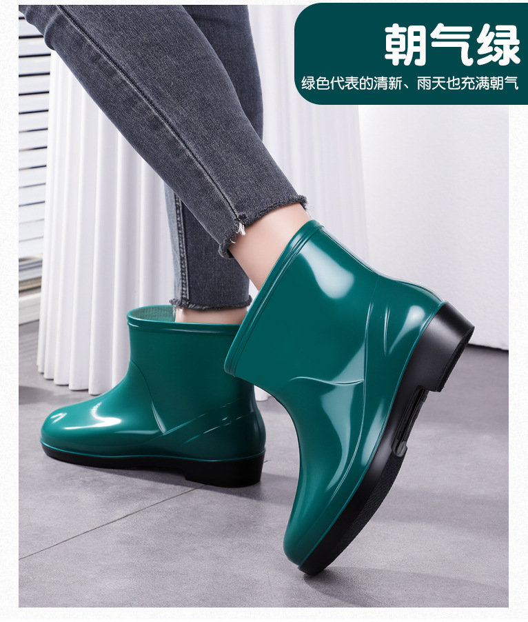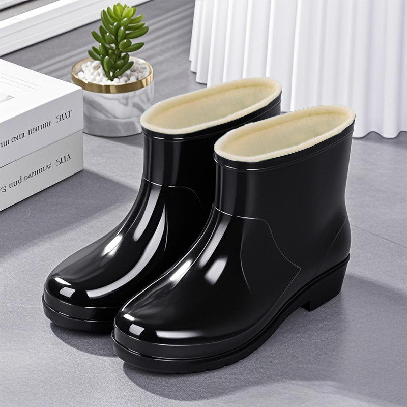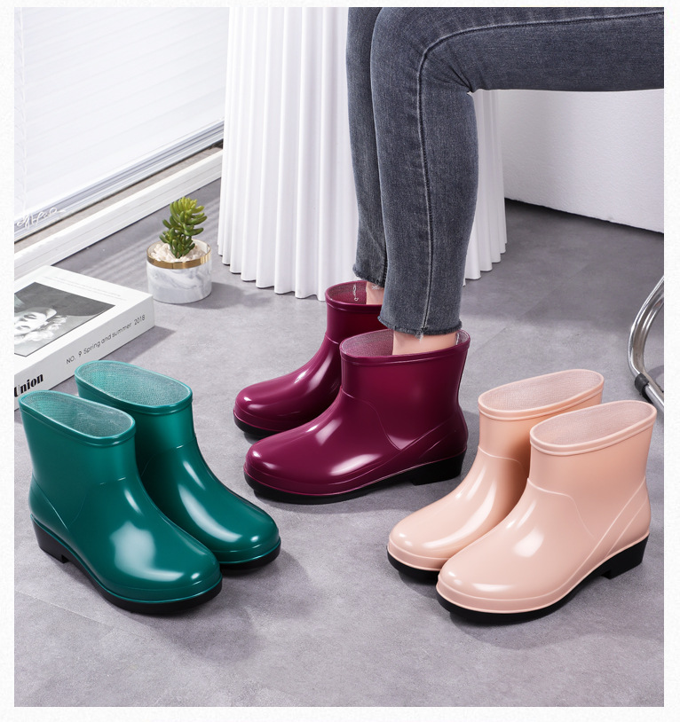 Нескользящая мода кухня с флисом и коротким дождевой сапоги женский ПВХ говяжий сухожилий фон сплошной цвет низкий трубочка женская водная обувь оптом