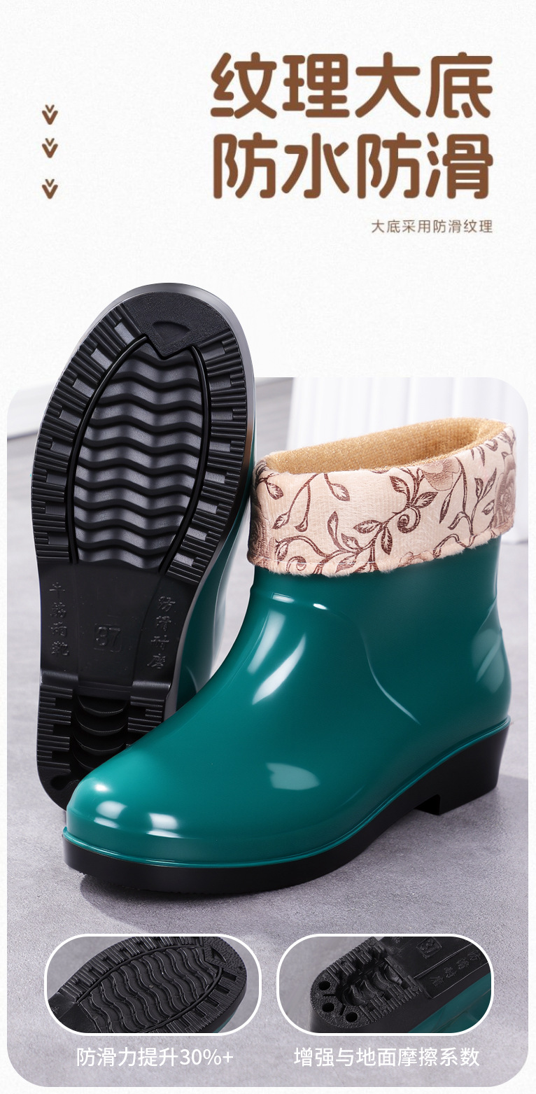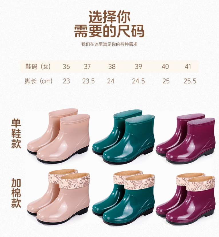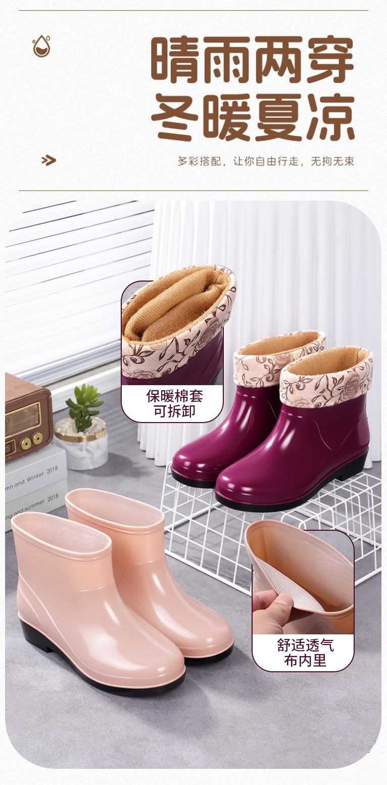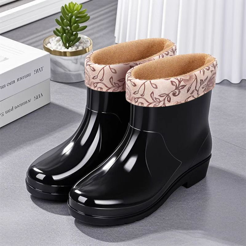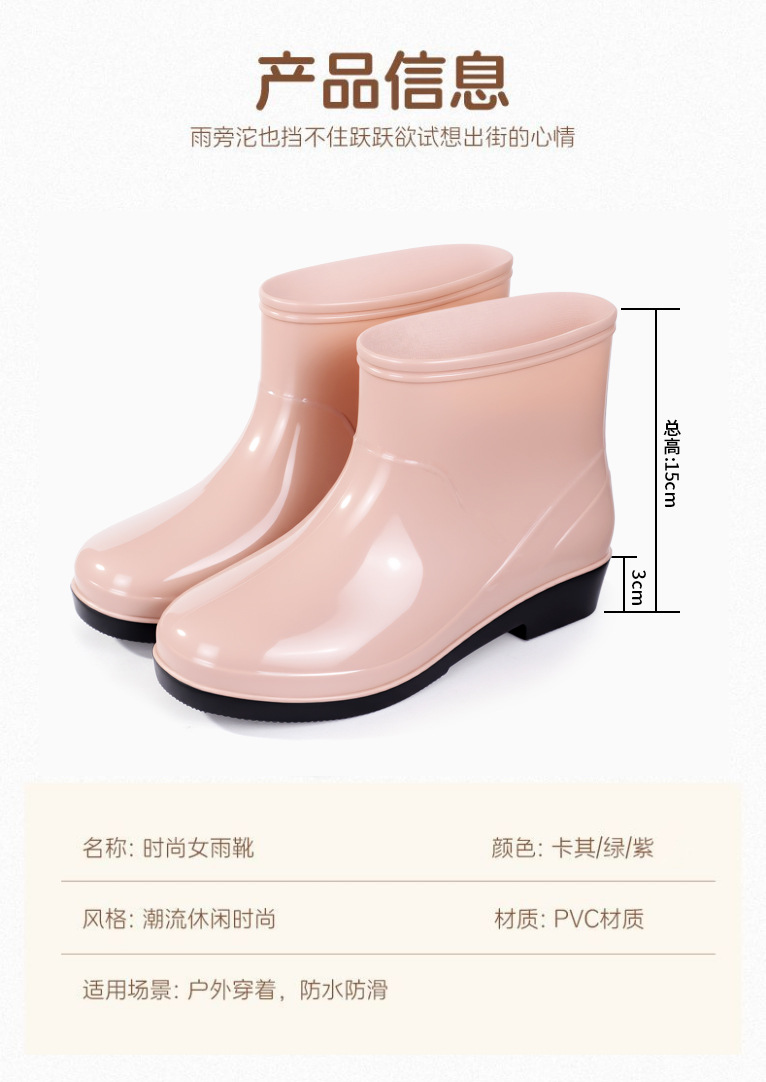 Нескользящая мода кухня с флисом и коротким дождевой сапоги женский ПВХ говяжий сухожилий фон сплошной цвет низкий трубочка женская водная обувь оптом