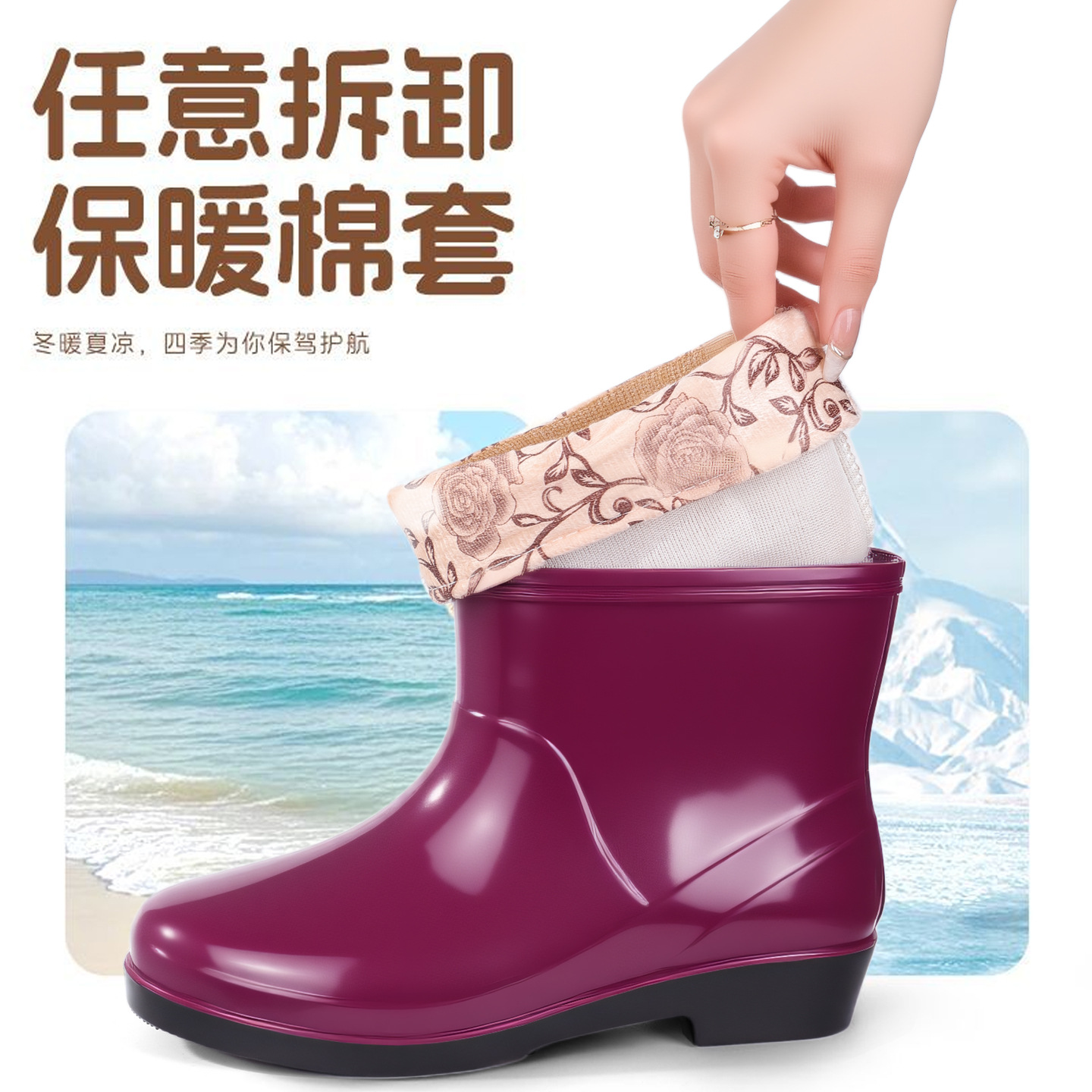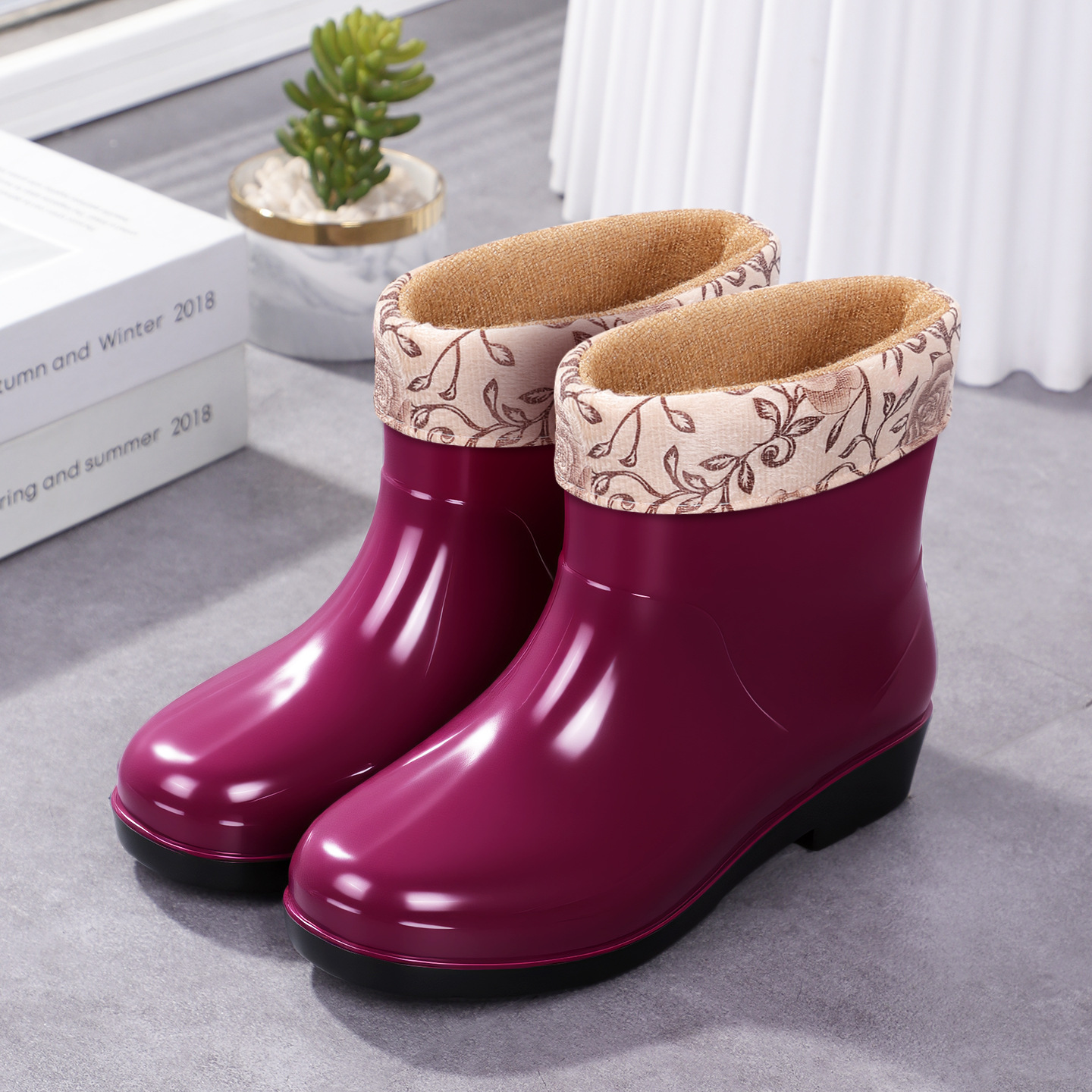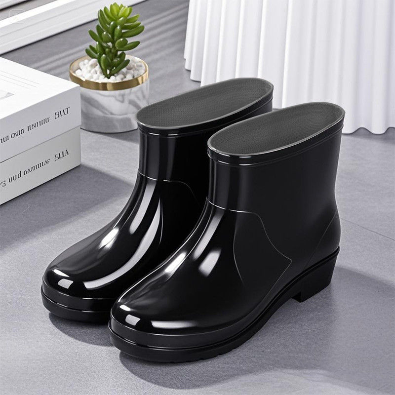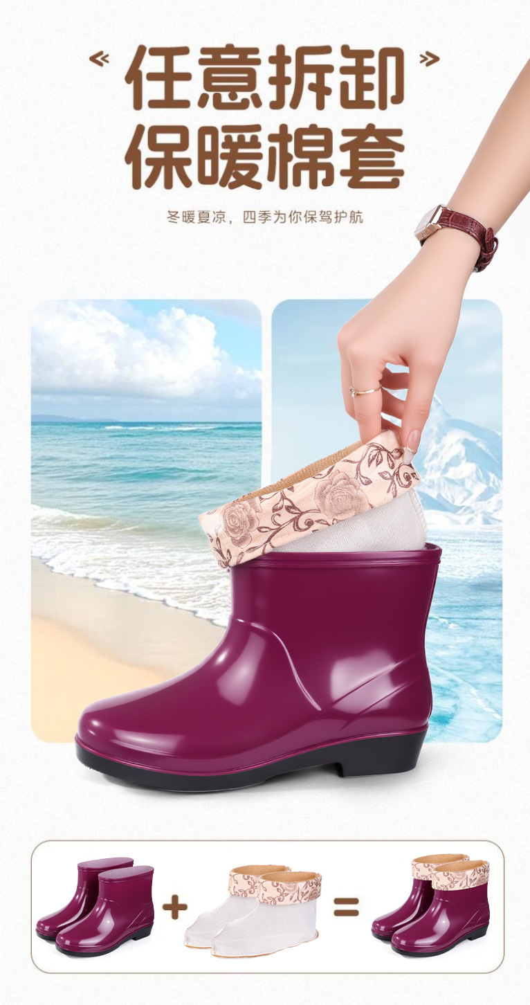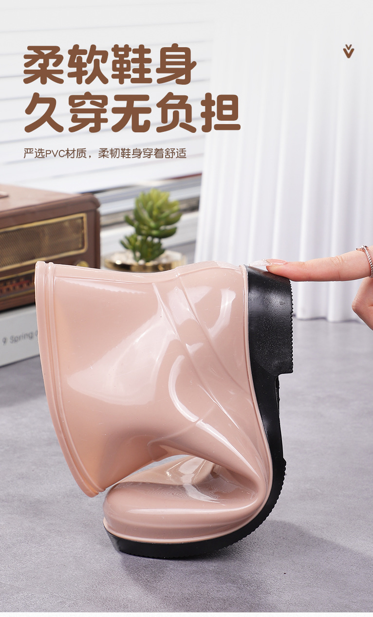 Нескользящая мода кухня с флисом и коротким дождевой сапоги женский ПВХ говяжий сухожилий фон сплошной цвет низкий трубочка женская водная обувь оптом