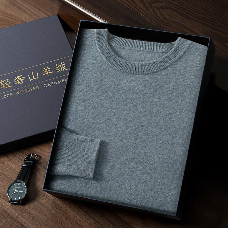 Осень и зима Новый Круглый шею мужской Кашемировый свитер Деловой джентльмен вязаный шерстяной свитер Пуловер с длинным рукавом База Кашемировый свитер