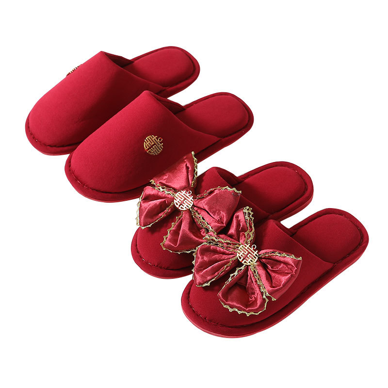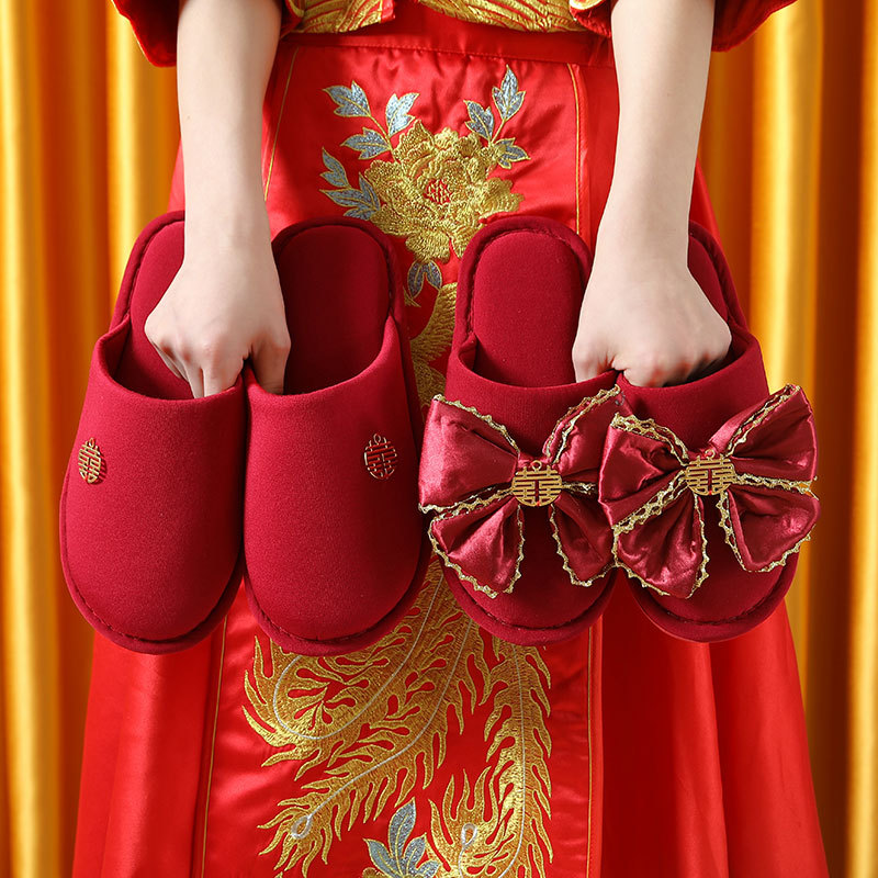 Свадебные тапочки Высококачественные зимние праздничные красные Тапочки для пары, свадьбы невесты, сопровождающие тапочки для пары дома