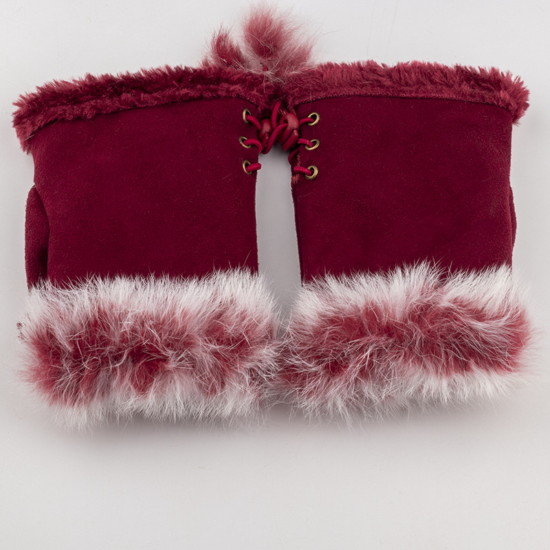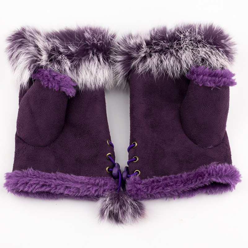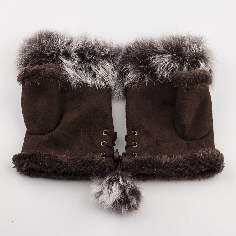 Поставка меха кролика половина палец перчатки зимние теплые перчатки Дамы клавиатуры перчатки натуральный мех кролика половина палец перчатки оптом