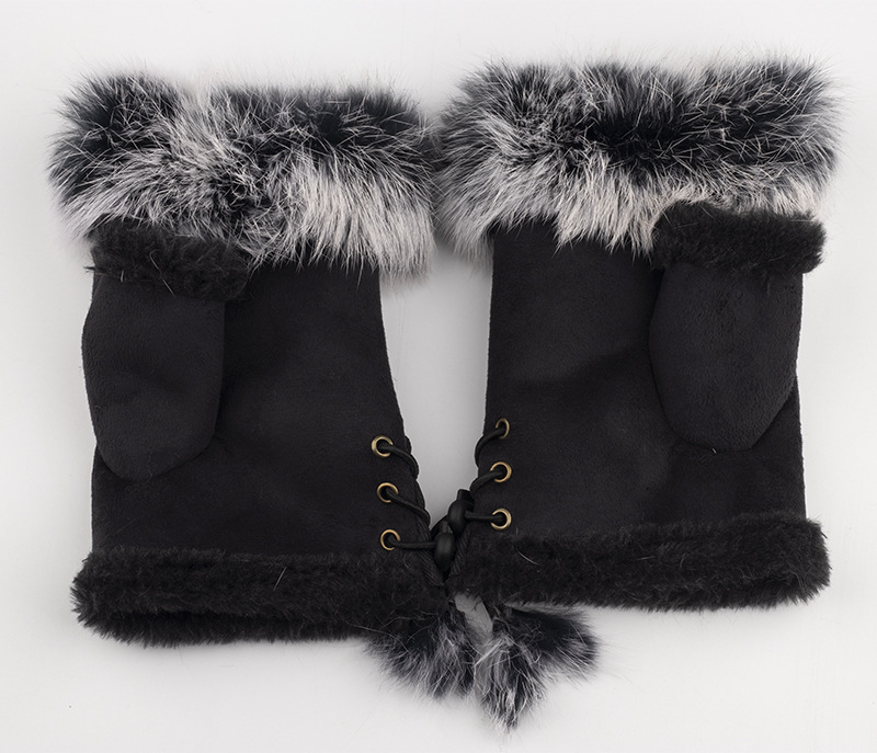 AL перчатки на полпальца из кроличьего меха