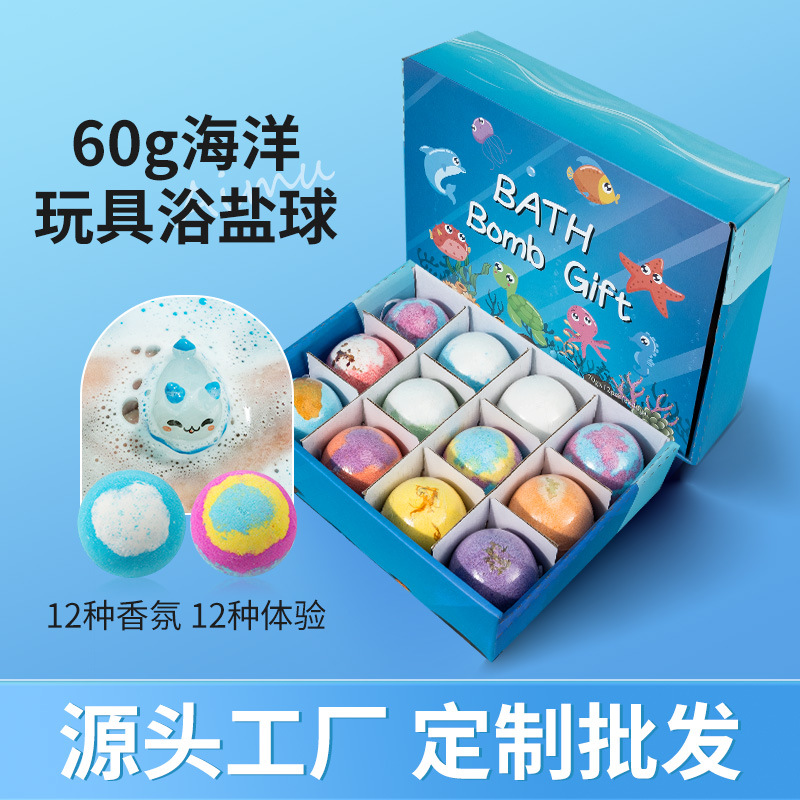Набор морских игрушечных солей для ванн, 60 г*12 шт., шарики для ванны с пузырьками, детские шарики для ванны, подарочная коробка