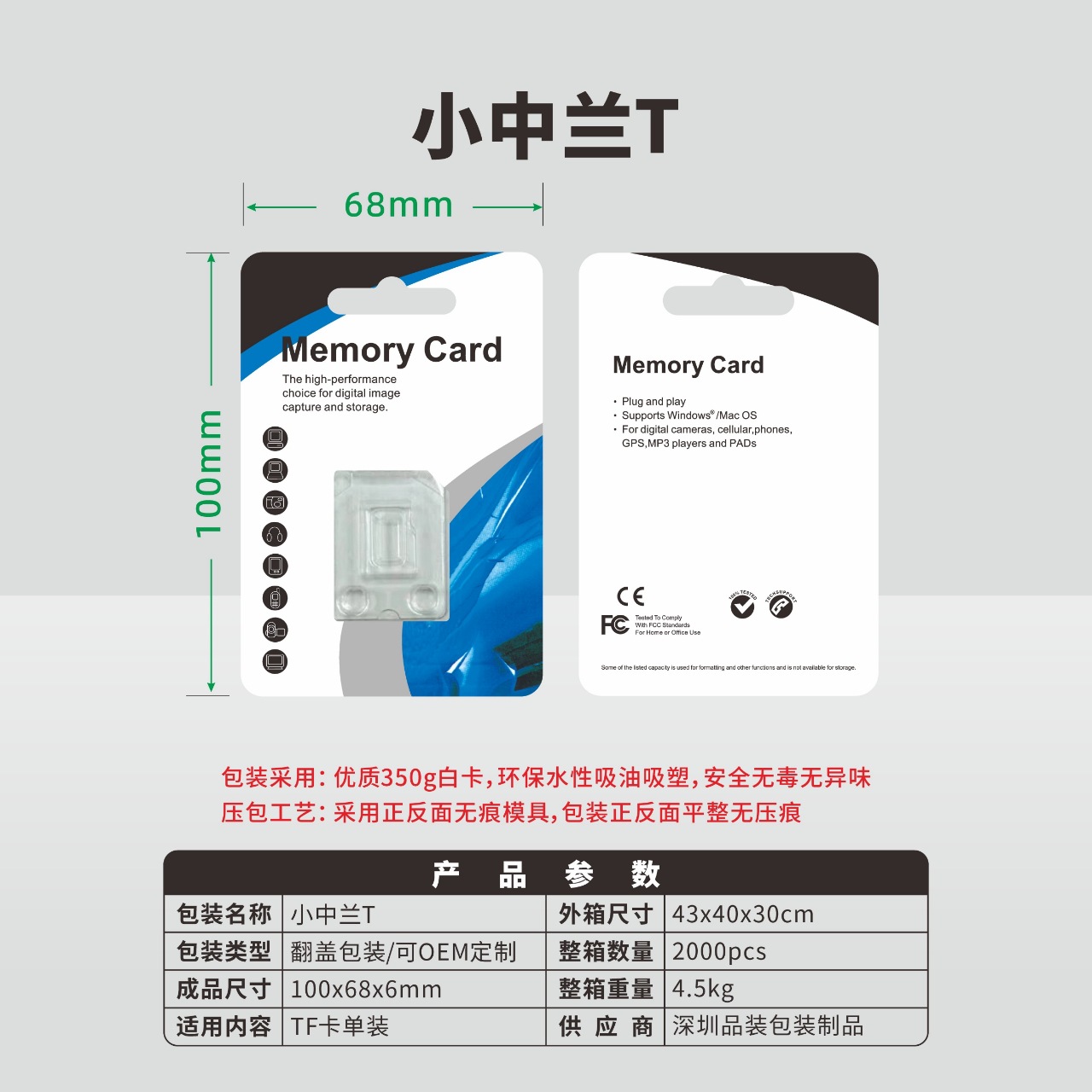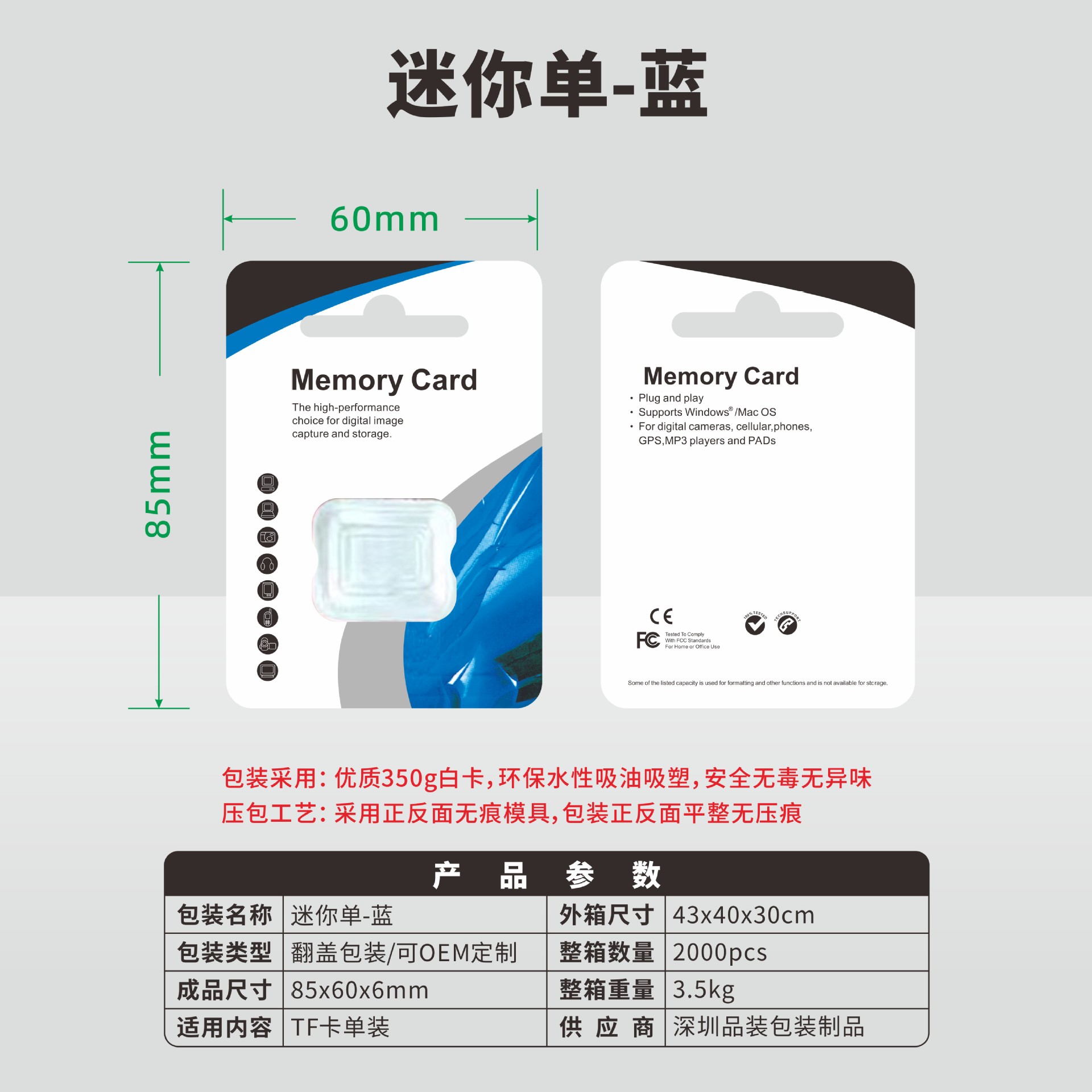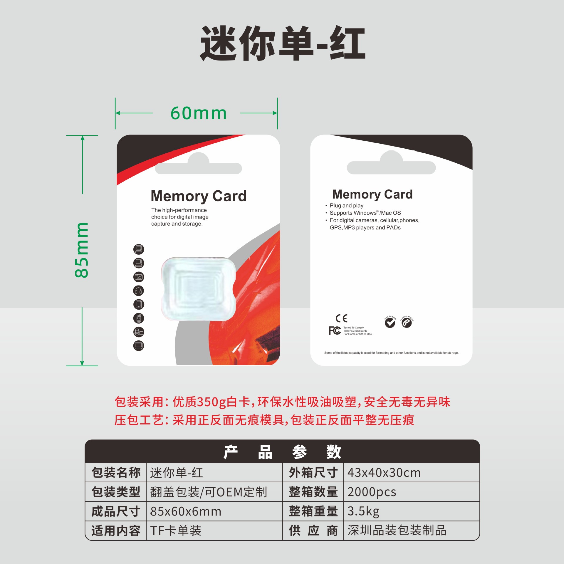Упаковка для высокоскоростных карт памяти: блистерная упаковка, красно-синяя картонная упаковка, упаковка для систем видеонаблюдения, коробка для хранения TF-карт, маленькая белая коробка.