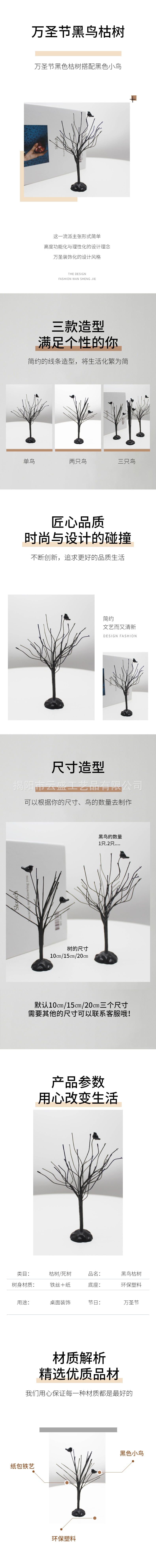 Миниатюрное настольное украшение в виде черного птичьего дерева на Хэллоуин, декор для стола на Рождество и Хэллоуин, оптовая продажа