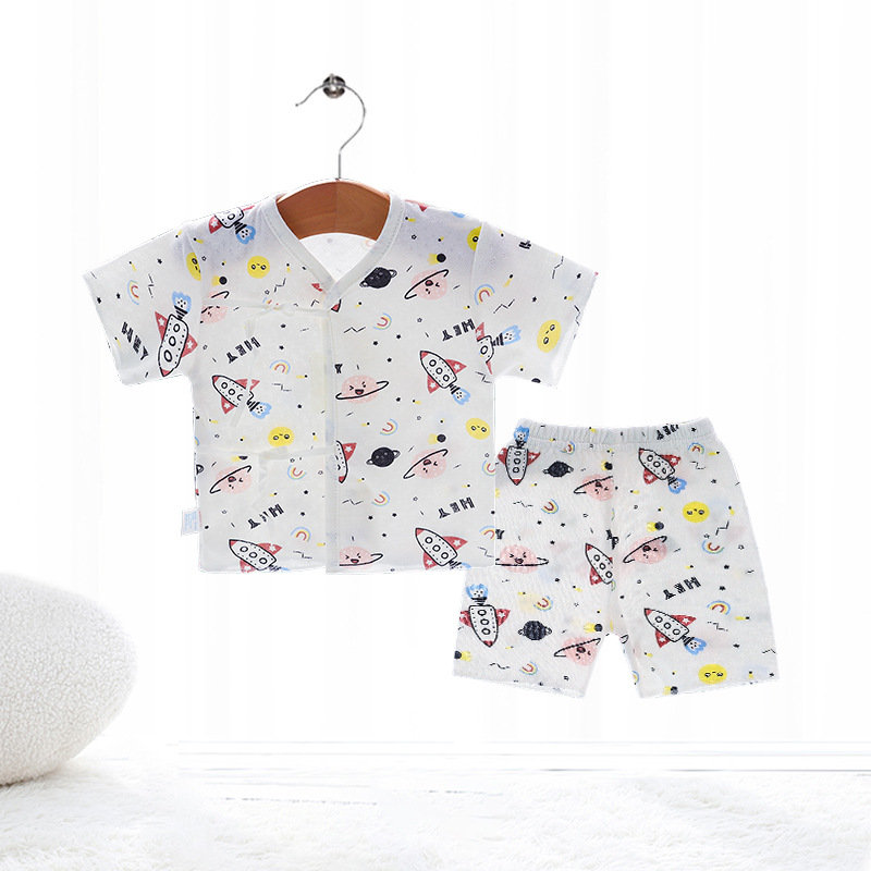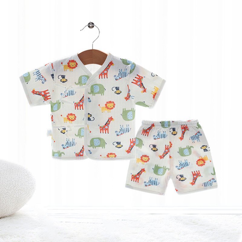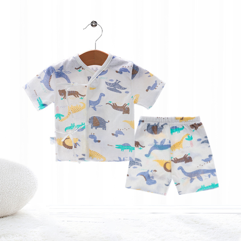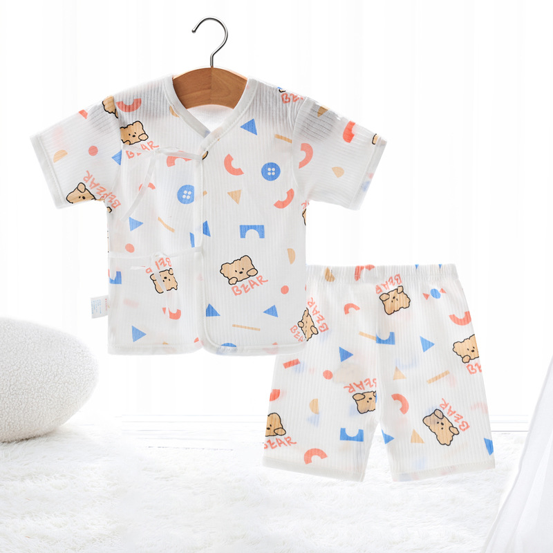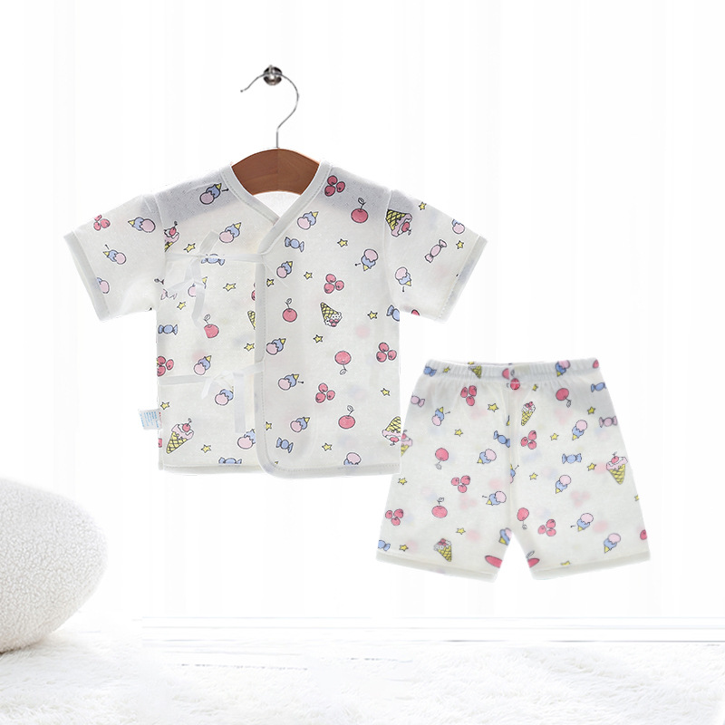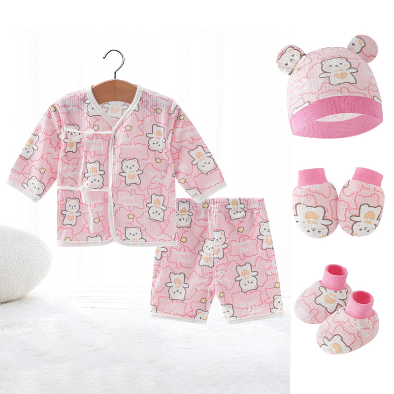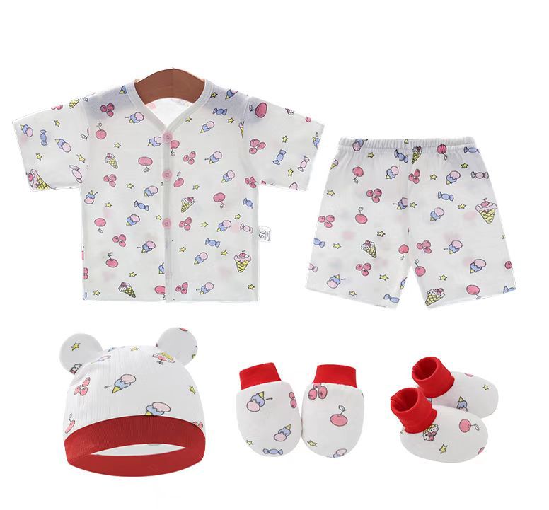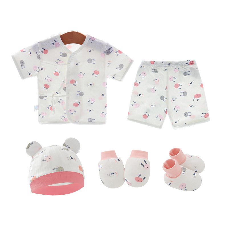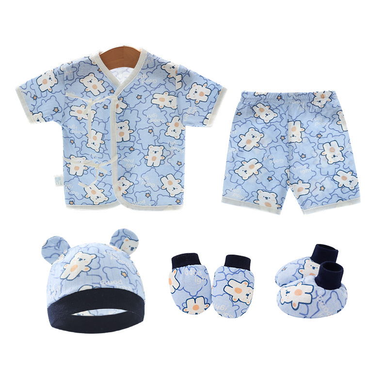 Внешняя торговля Шорты с короткими рукавами для европейских и американских новорожденных, комплект из фетальной шапочки для рук и ног, детская одежда из пяти предметов, шнуровка, фетальная одежда, Детский костюм