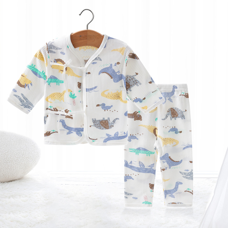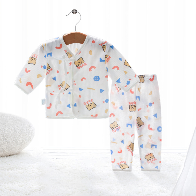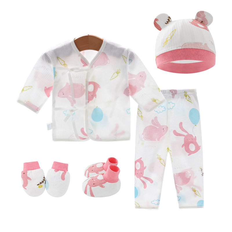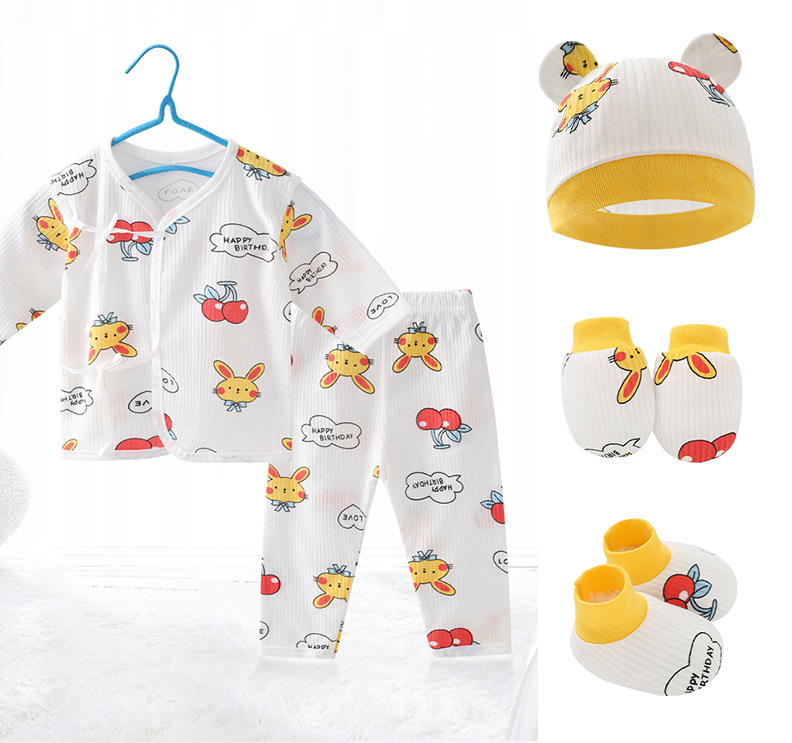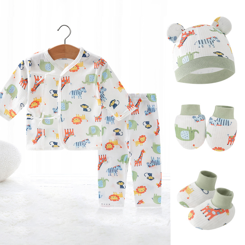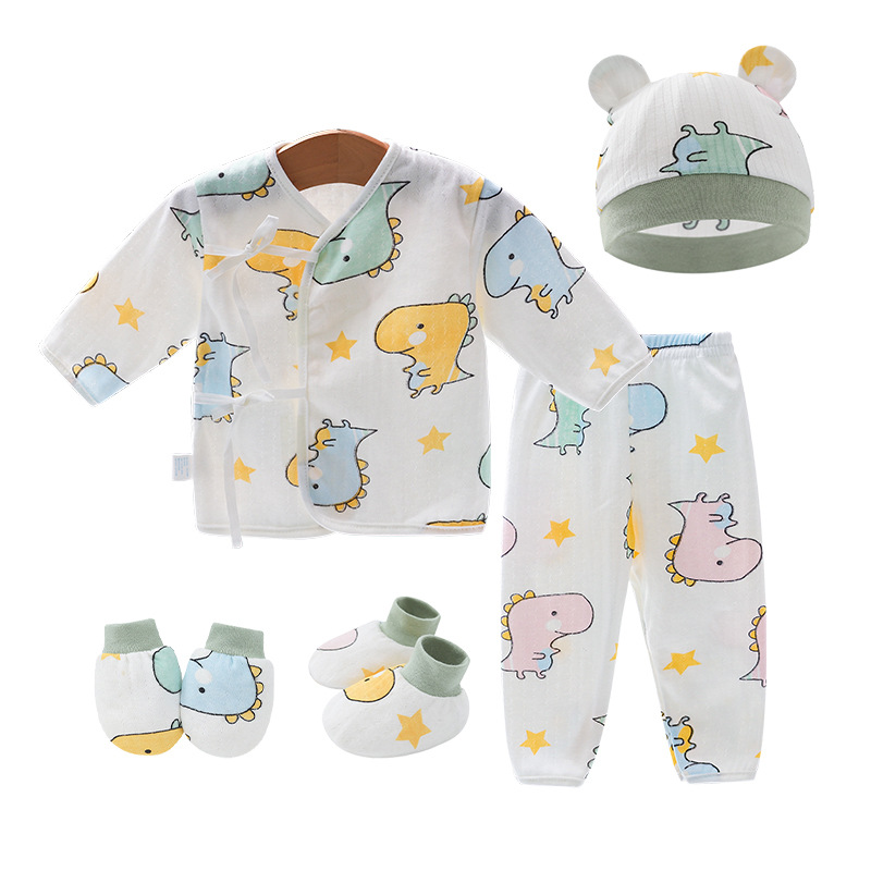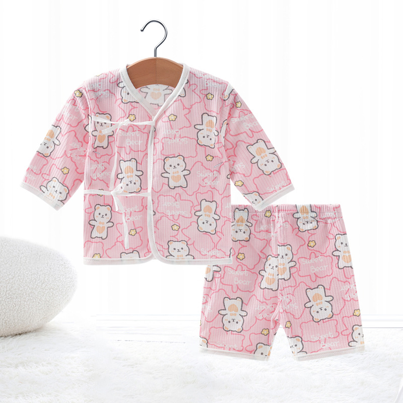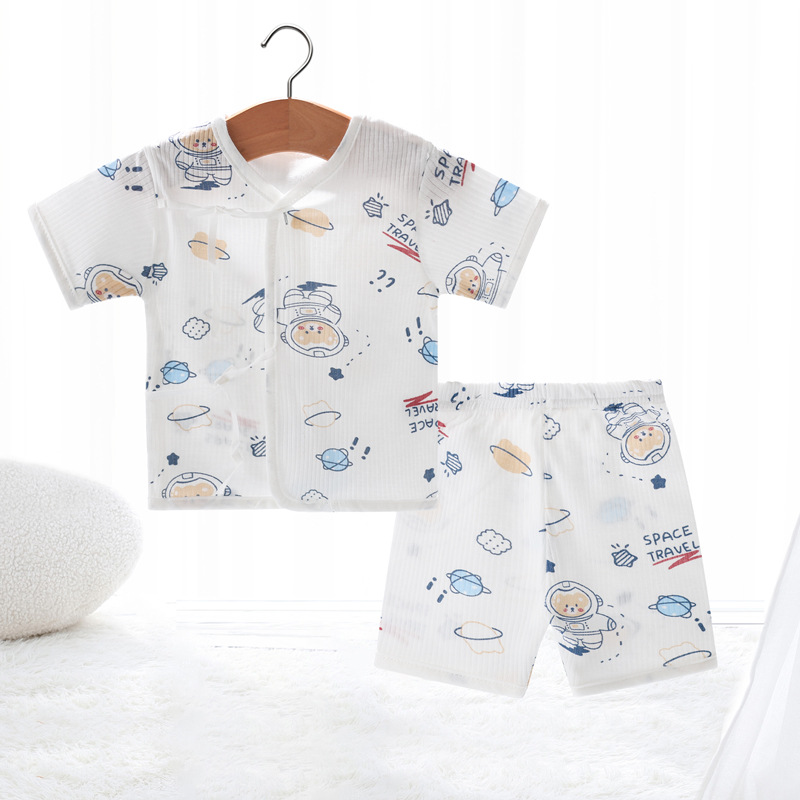 Внешняя торговля Шорты с короткими рукавами для европейских и американских новорожденных, комплект из фетальной шапочки для рук и ног, детская одежда из пяти предметов, шнуровка, фетальная одежда, Детский костюм