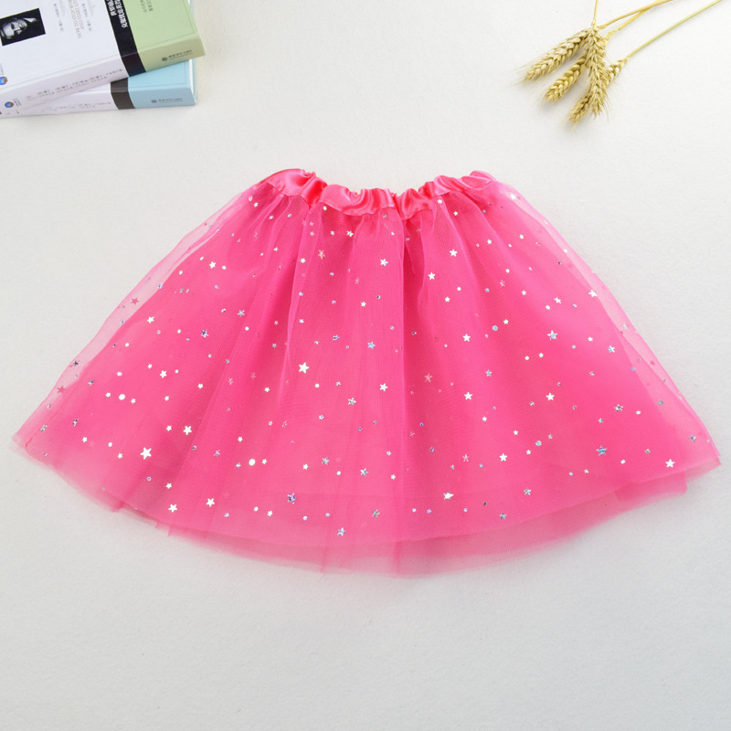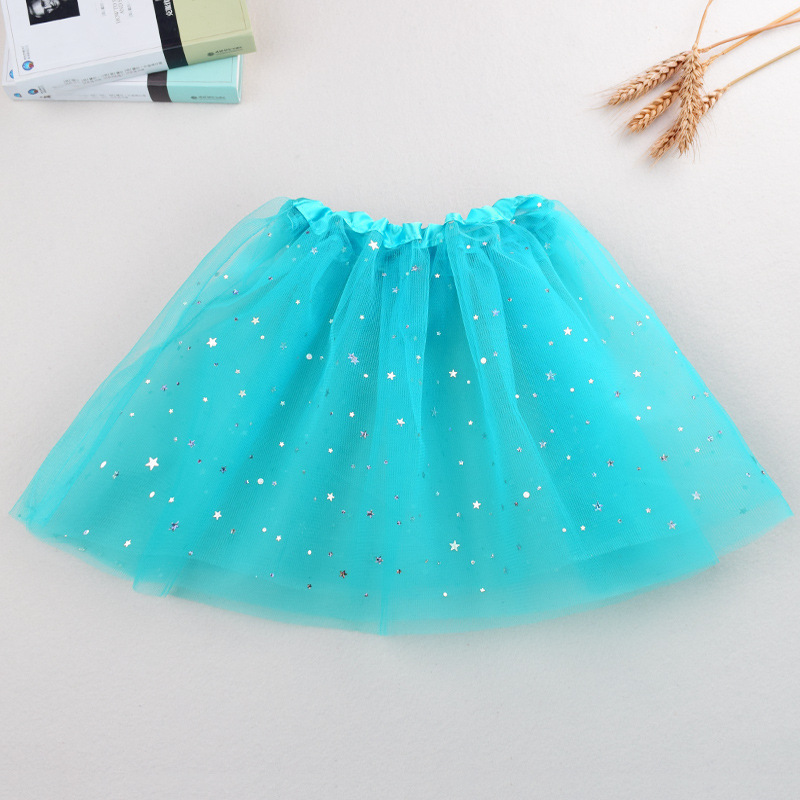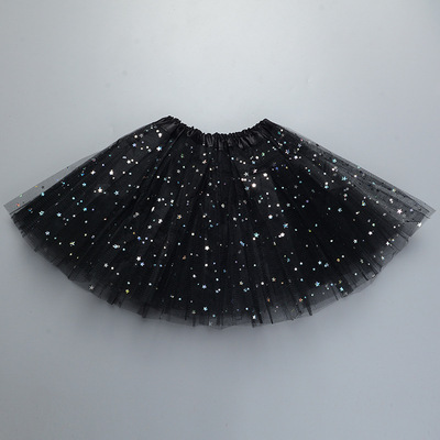 Детская юбка для танцев Юбка-пачка принцессы Юбка с пайетками Звезда Луна Юбка для выступлений Трехслойная юбка с вуалью из шести предметов
