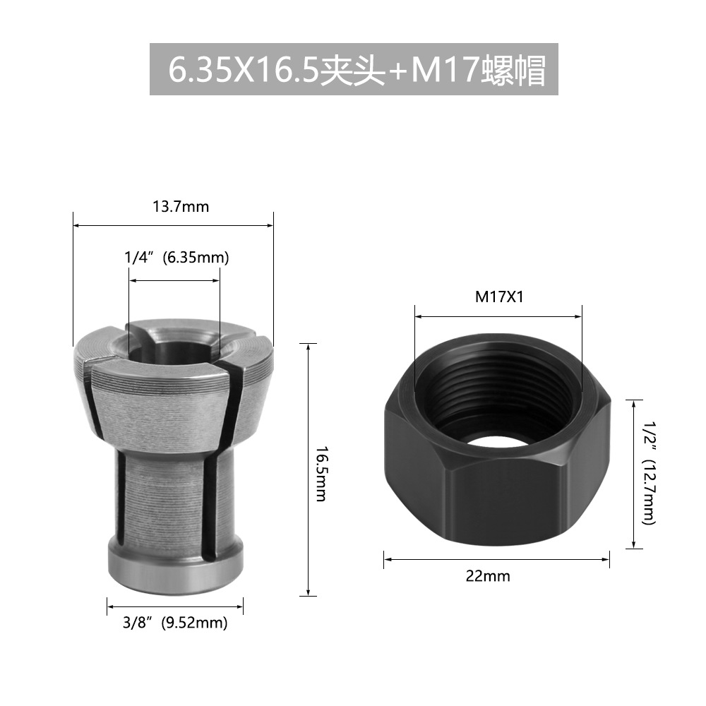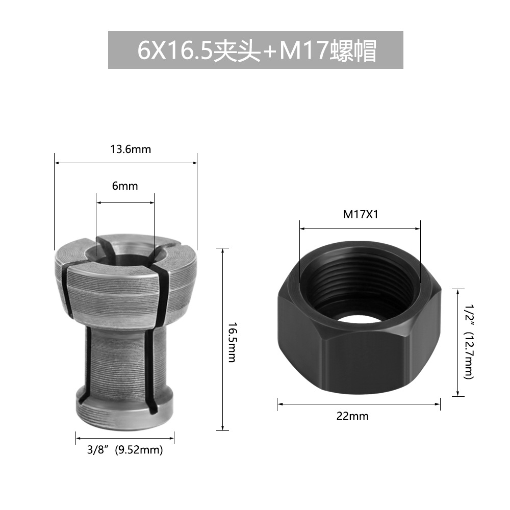 CLMM17T4A 4件套 M17螺帽+夹头6x16.5+夹头6.35x16.5+夹头8x8 0.034 密封袋 咨询客服