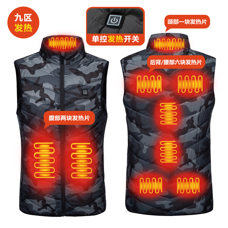Горячие жилеты с несколькими зонами Нагретые жилеты трансграничные большие размеры утолщенные тепловые жилеты 17 Зона 9