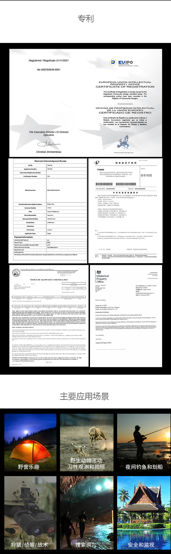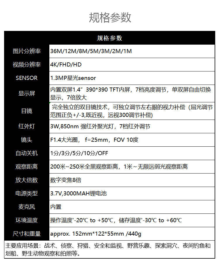狩猎、侦察、安全和监视、野营乐趣,探索洞穴、夜间钓鱼和划船、野生动物观察和拍照等。