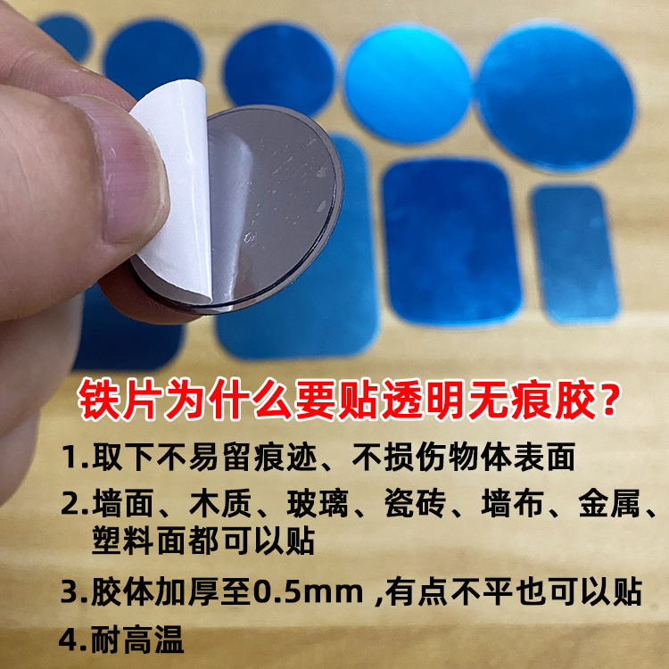 1.本产品是铁片贴了背胶,本身是铁的材质,本身没有磁性, 但是可以被磁铁吸住。