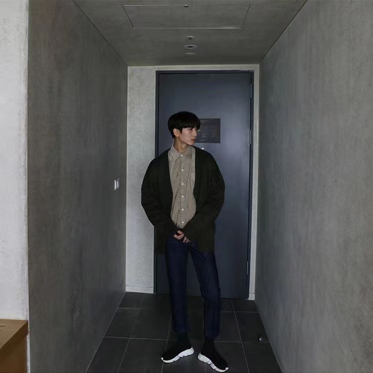 Заводская цена, прямые продажи, мужской свободный с V-образным вырезом, красивый высококачественный однобортный однотонный осенний кардиган-свитер, куртка