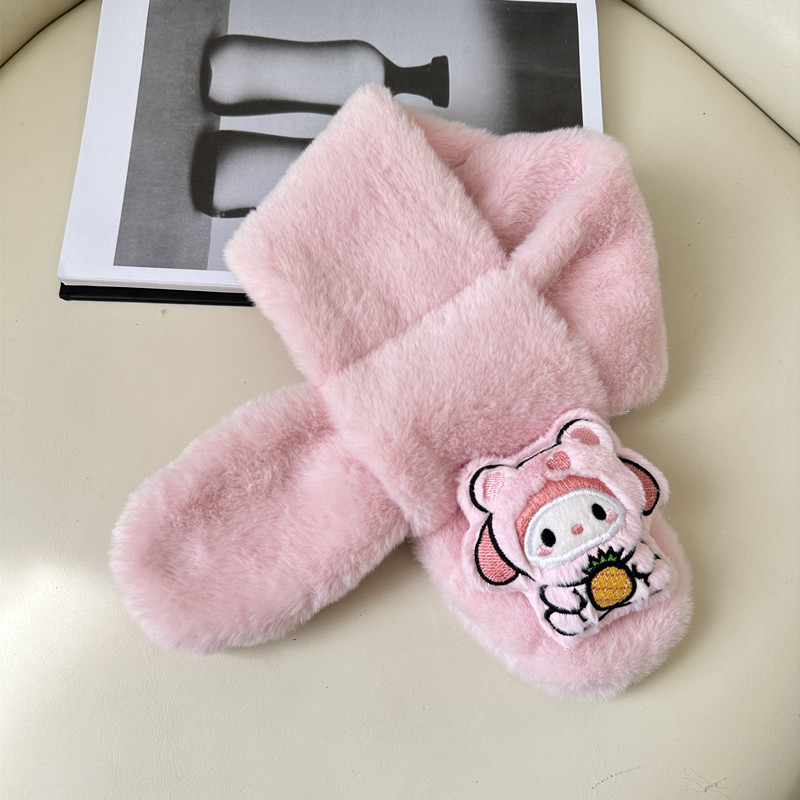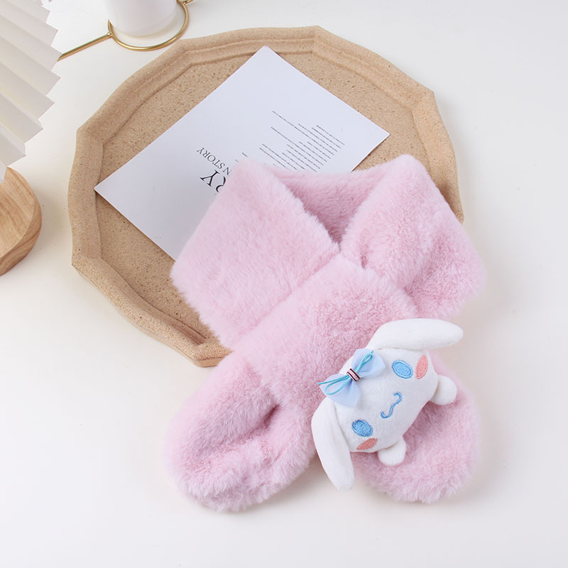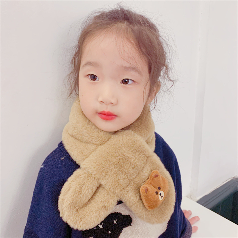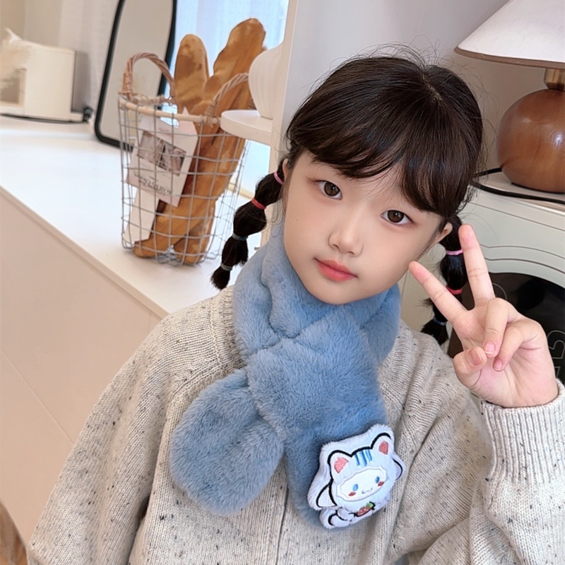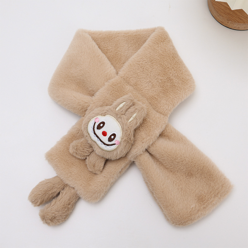 Корейская версия, милый универсальный плюшевый детский шарф с рисунком, утолщенное искусственное кроличье меховое зимнее детское теплое шейное утеплитель для мальчиков и девочек