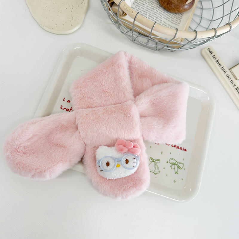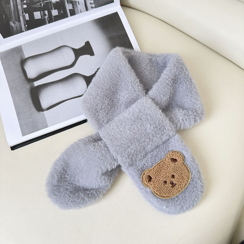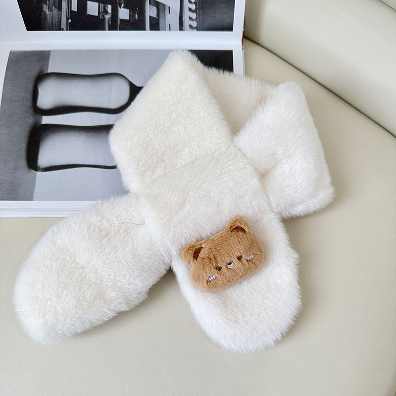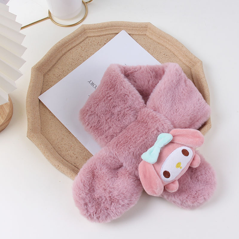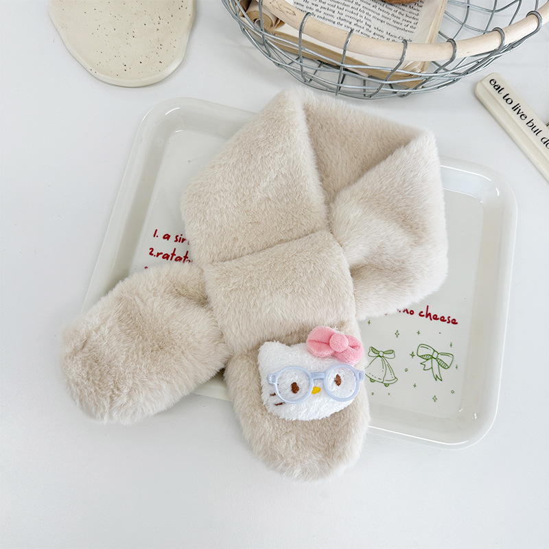 Корейская версия, милый универсальный плюшевый детский шарф с рисунком, утолщенное искусственное кроличье меховое зимнее детское теплое шейное утеплитель для мальчиков и девочек