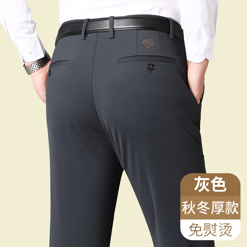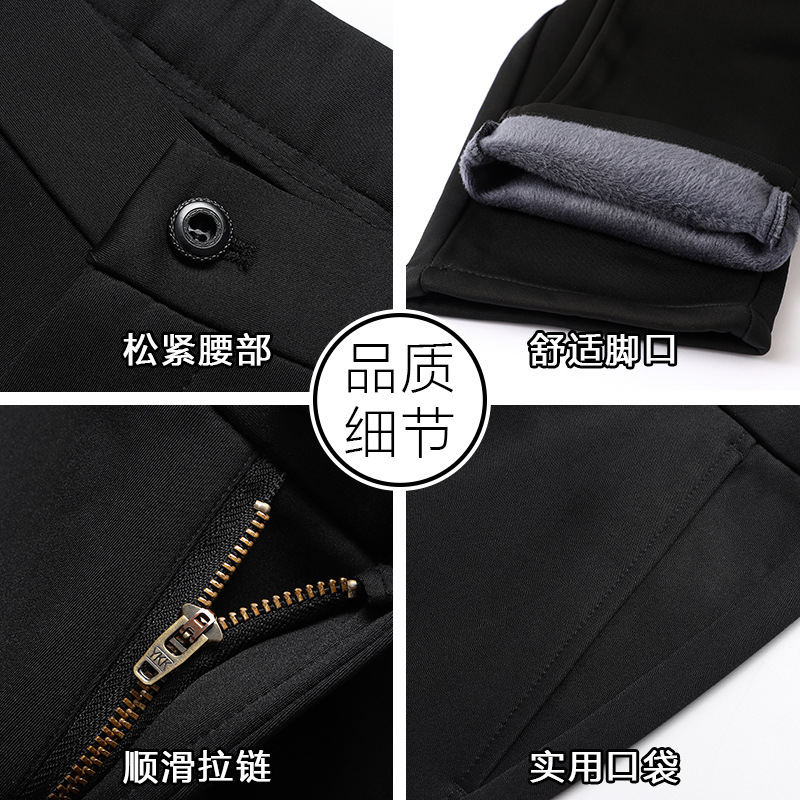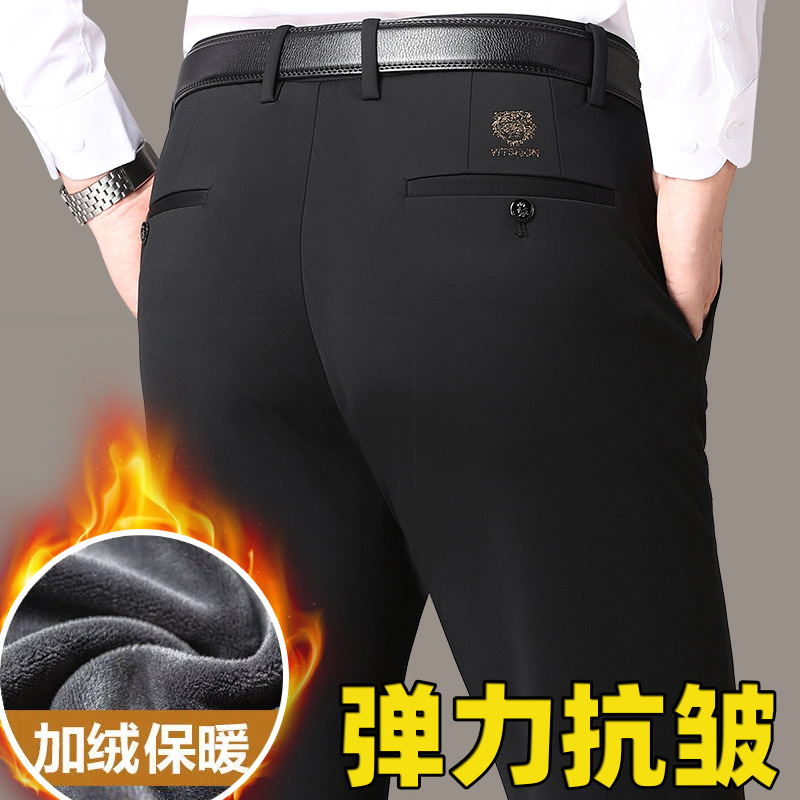 Четырехсторонние эластичные осенне-зимние повседневные брюки, мужские вязаные брюки, не гладкие, Четырехсторонние эластичные деловые длинные брюки, свободные мужские модные брюки на флисовой подкладке