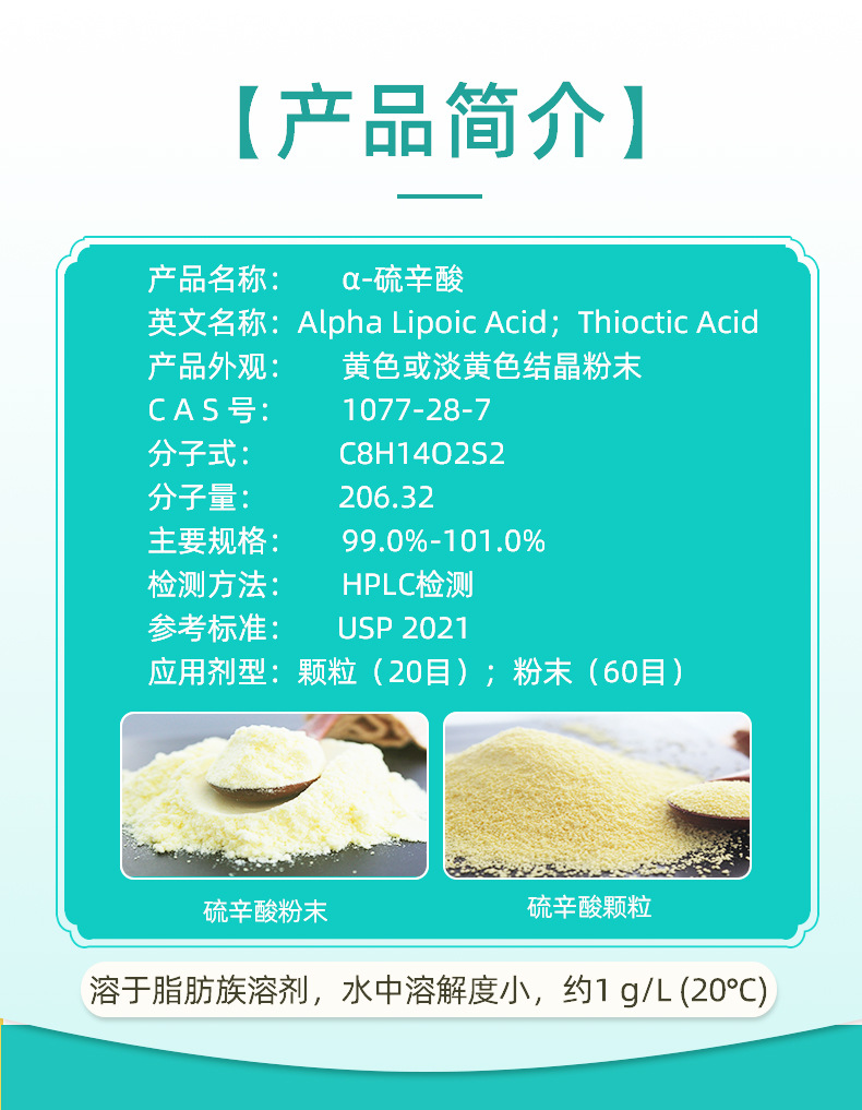 Завод в наличии гранулы A-липоевой кислоты экспортный сорт 1077-28-7 косметическое сырье USP порошок липоевой кислоты