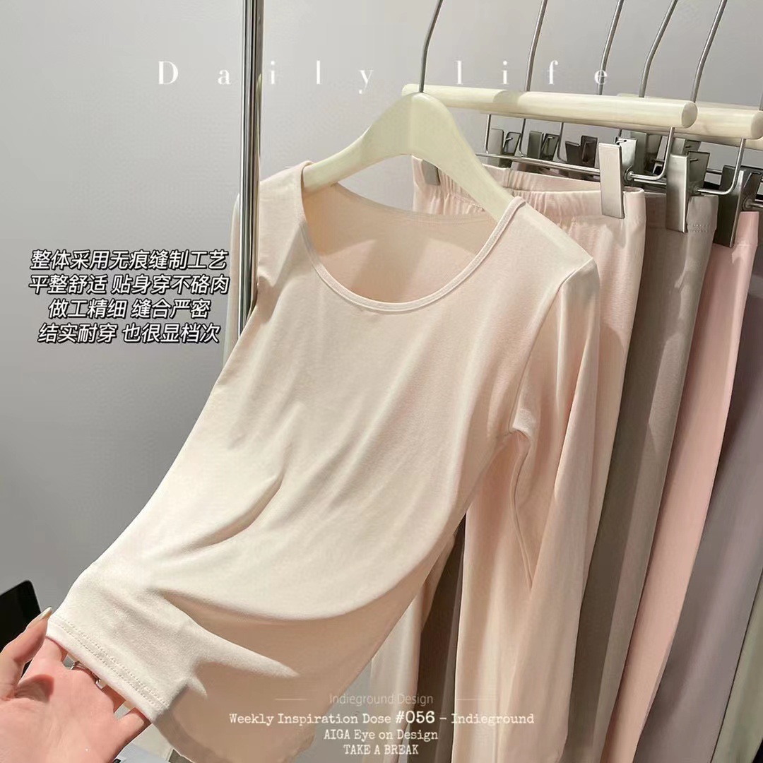 Best Friend 1,0 Кожаный косметический костюм Базовая рубашка Женская осенне-зимняя теплая бесшовная приталенная Пижама с круглым вырезом внутри