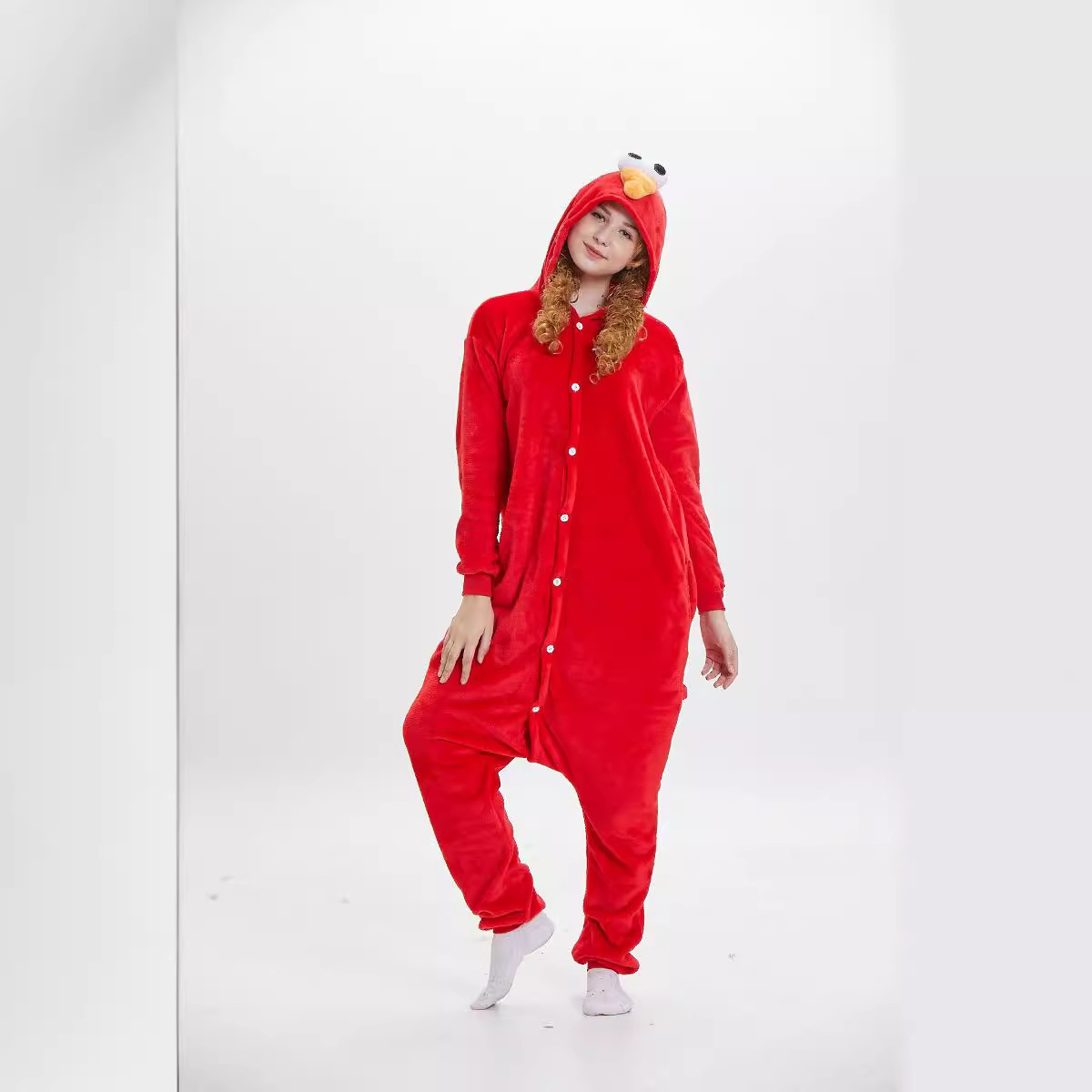 Осенне-зимние фланелевые детские пижамы с рисунком «Улица Сезам» и птицей, цельные пижамы Red Bull Pegasus для мужчин и женщин, домашняя одежда для пар