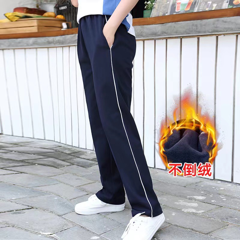 Брюки для школьной формы One Bar White Edge, мужские и женские для учащихся младших классов средней школы, Темно-Синие Школьные брюки, весенне-осенне-зимние утолщенные на флисовой подкладке