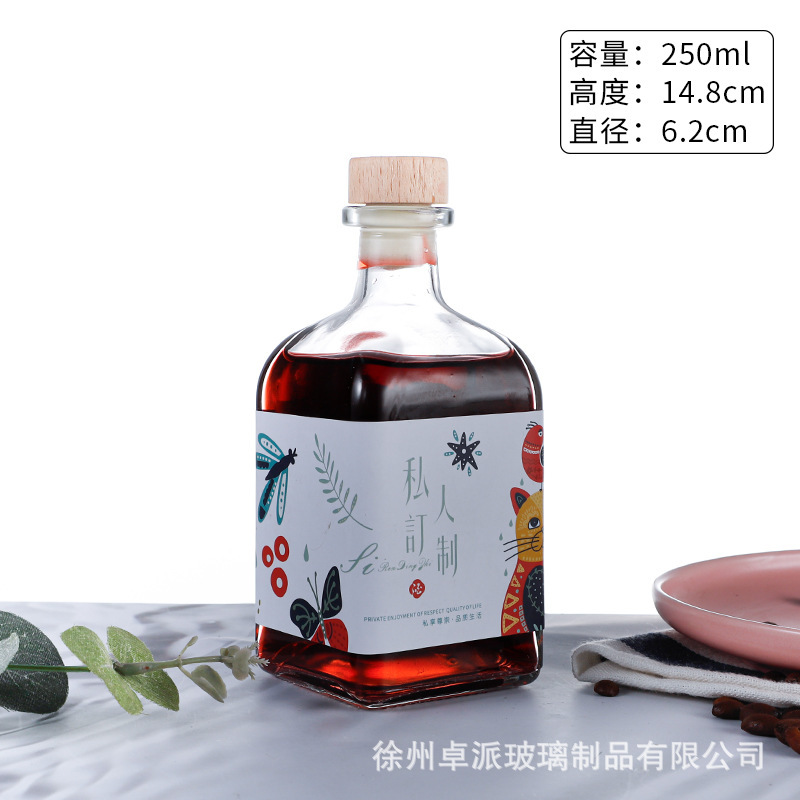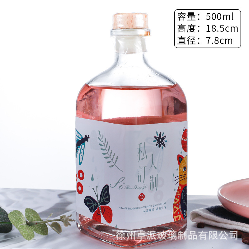 Оптовые поставки: квадратные бутылки для фруктового вина, стеклянные бутылки для напитков 500 мл, пустые бутылки для алкоголя, домашние бутылки для лечебного вина, креативный дизайн.