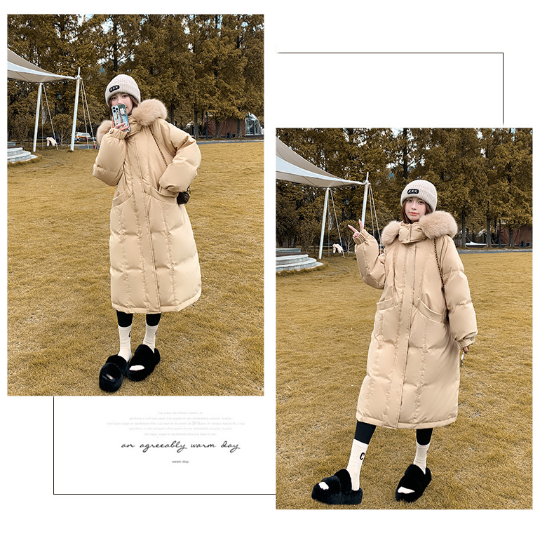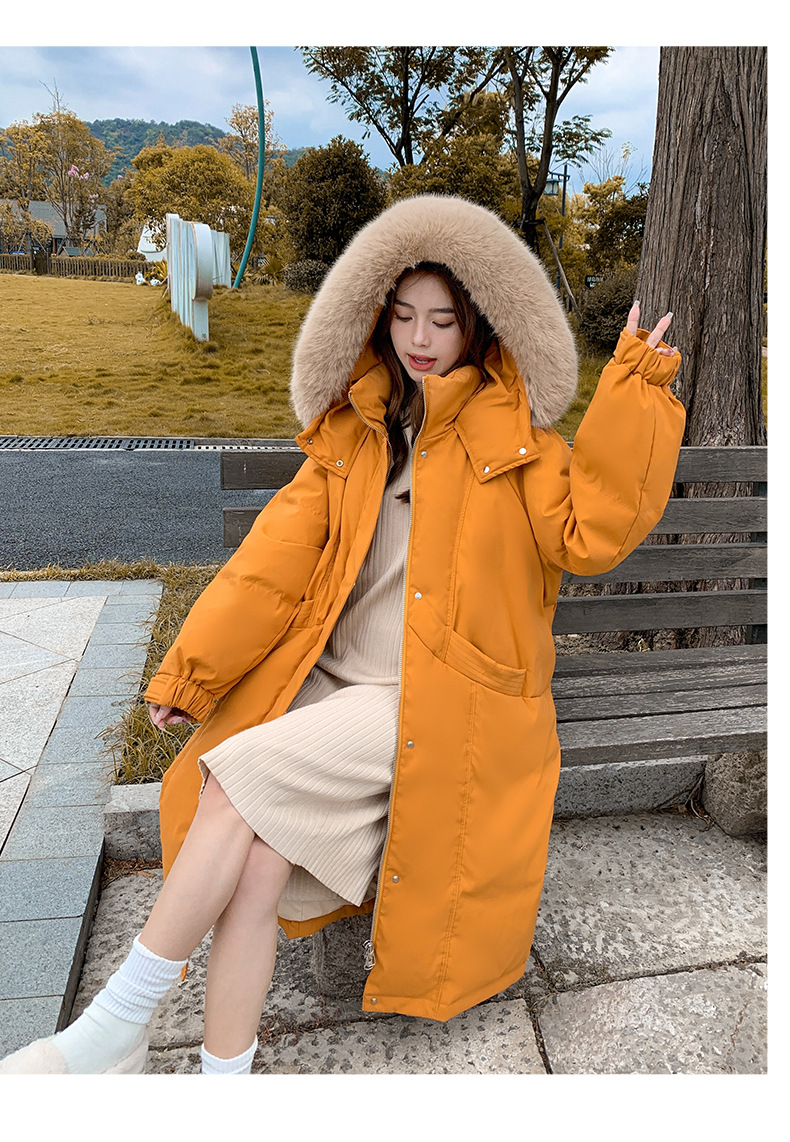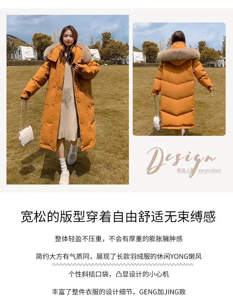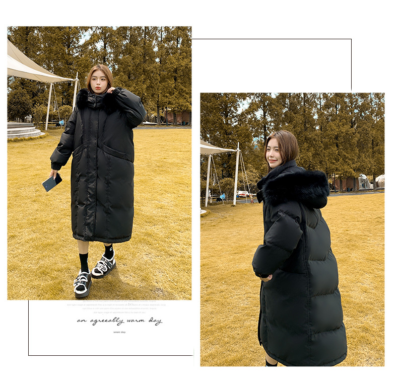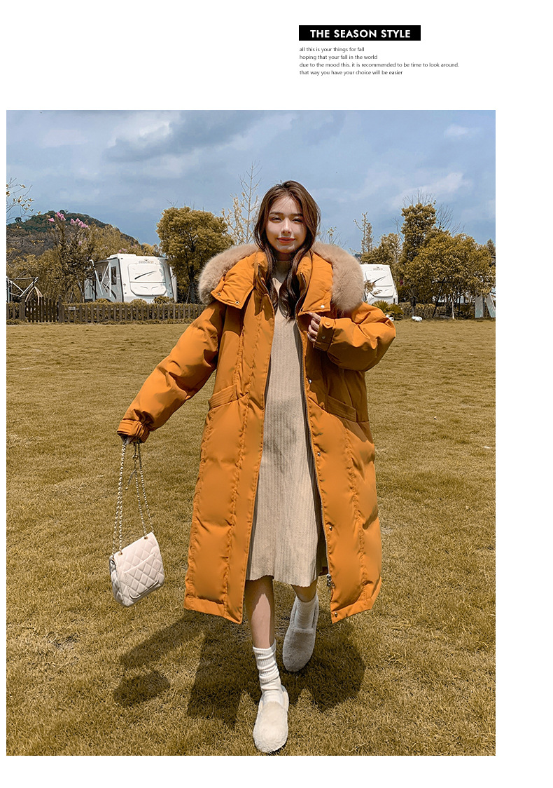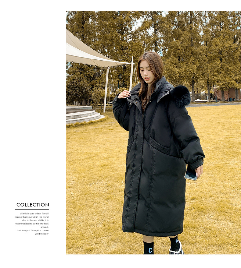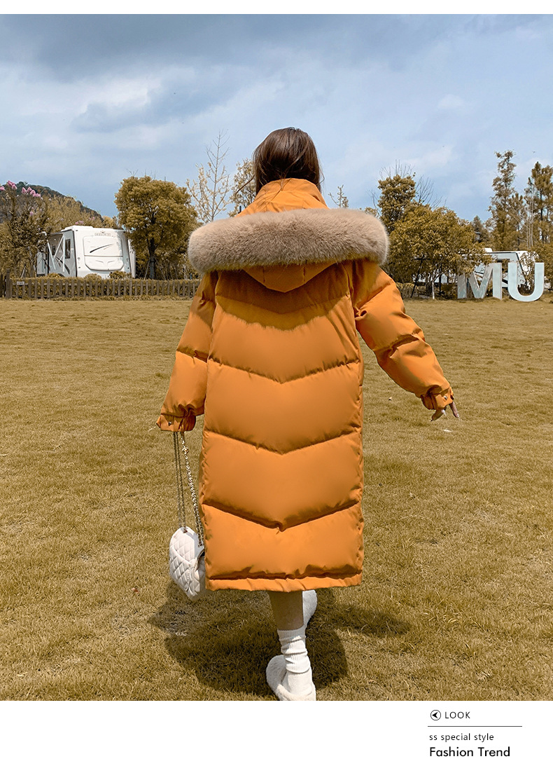 2025 Новый корейский стиль, женская длинная толстая пуховая куртка с меховым воротником из лисы, увеличенный размер 204