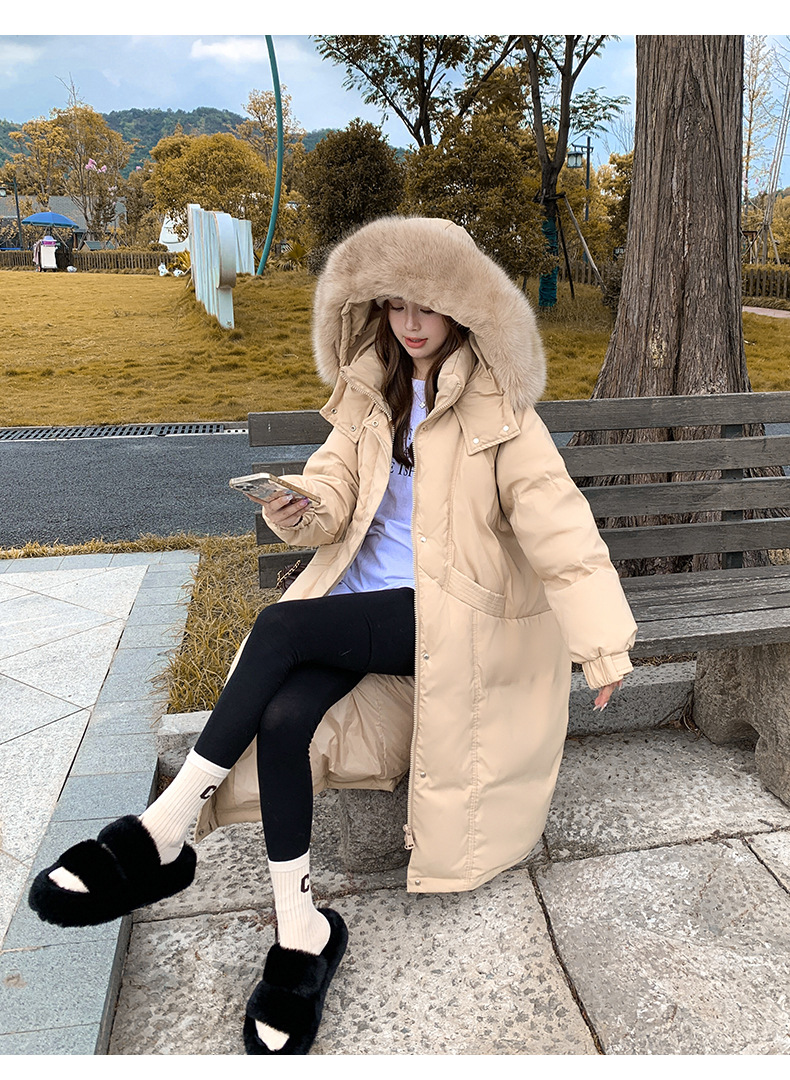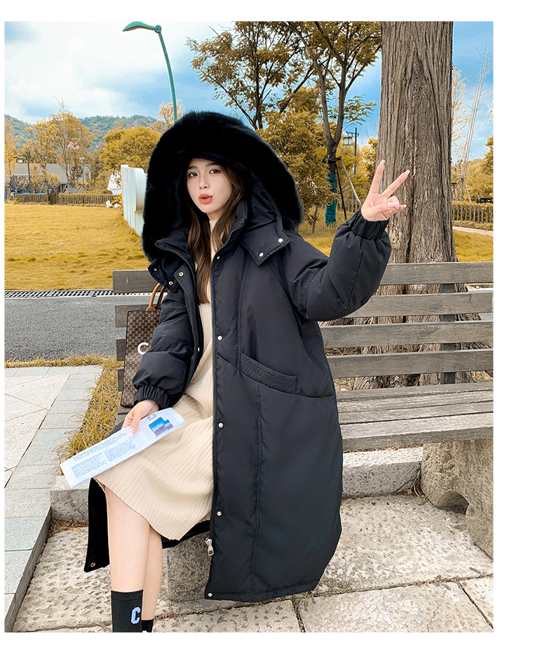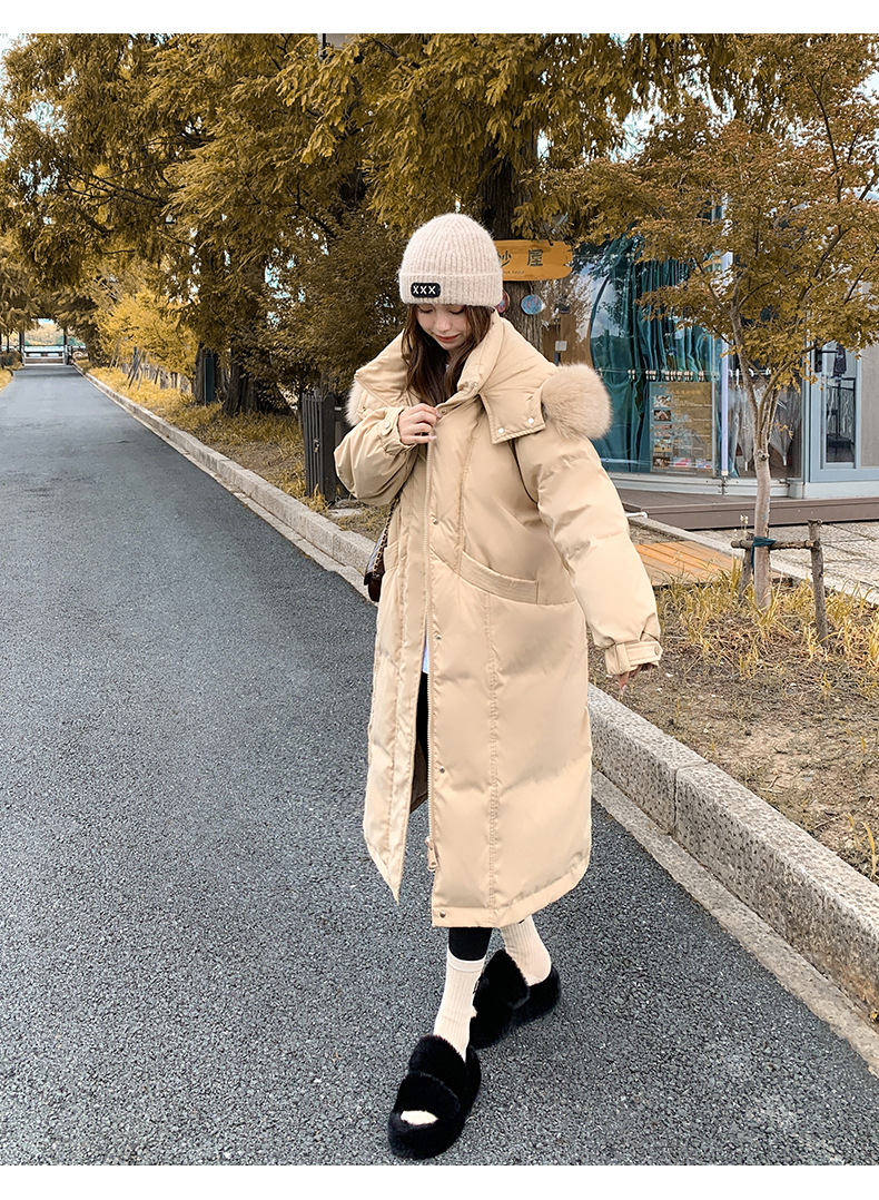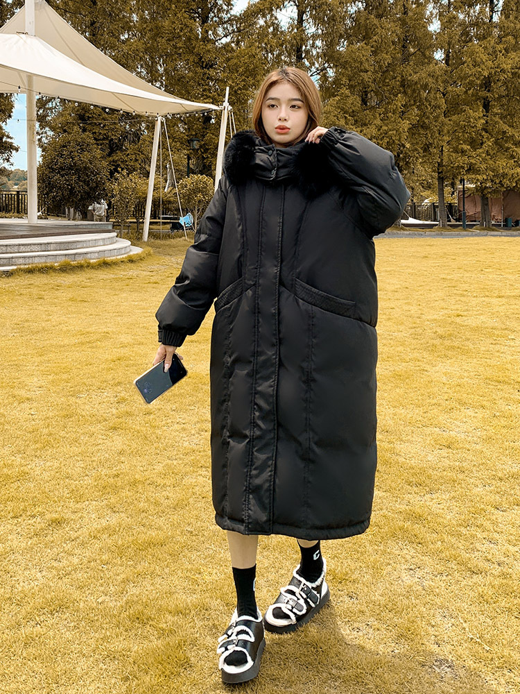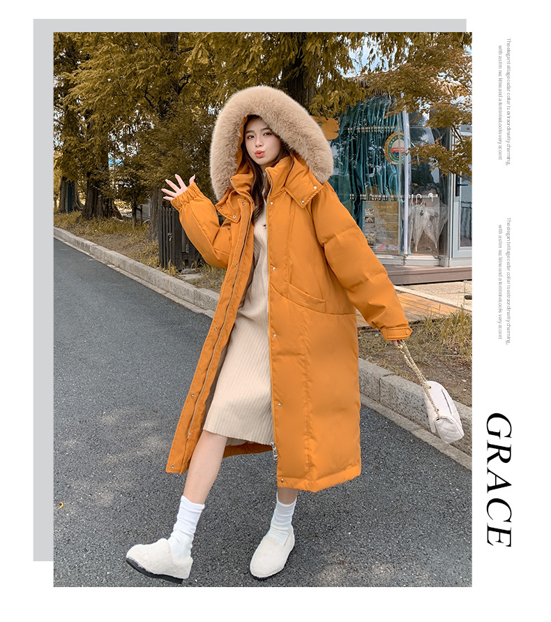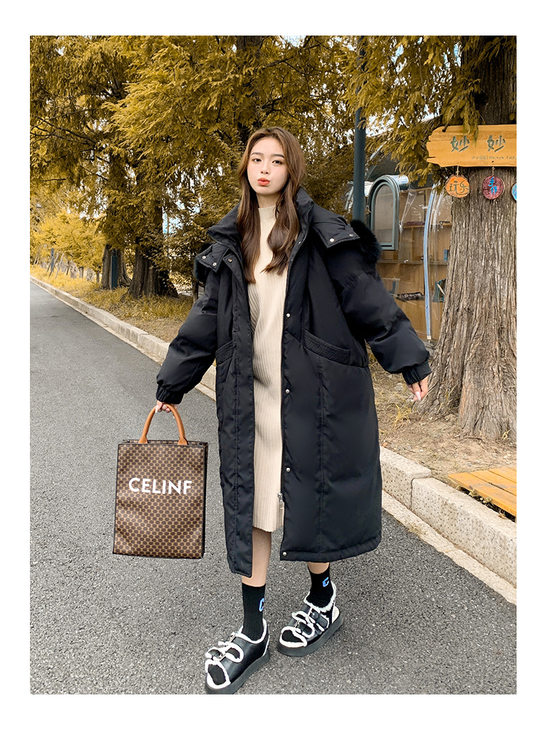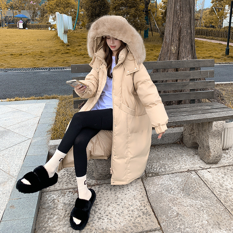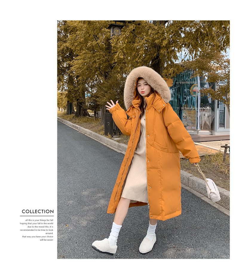 2025 Новый корейский стиль, женская длинная толстая пуховая куртка с меховым воротником из лисы, увеличенный размер 204