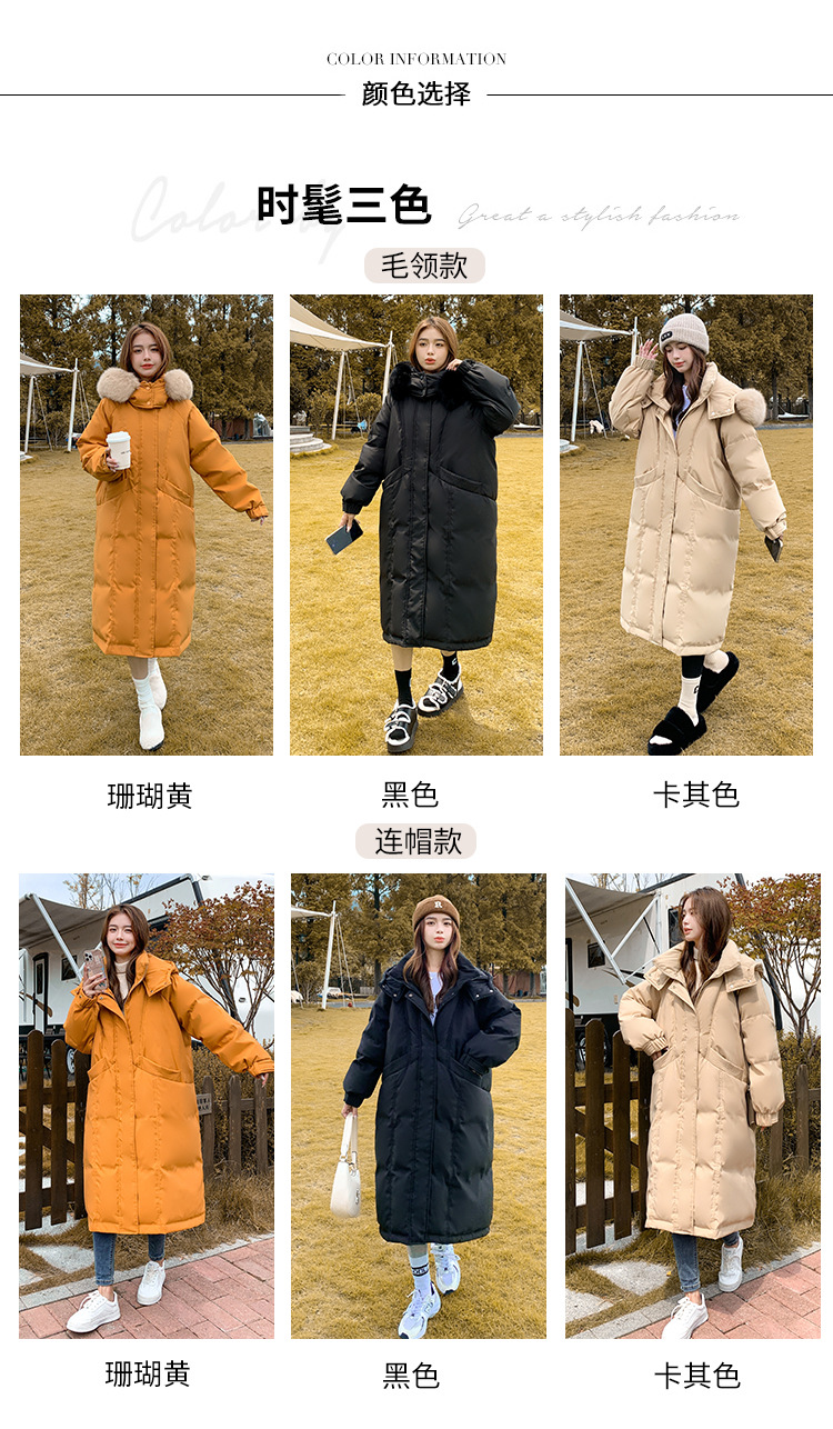 Черный (без мехового воротника); Хаки (без мехового воротника); Коралловый желтый (без мехового воротника); Черный (черный зеленый меховой воротник); Хаки (чай с молоком зеленый меховой воротник); Коралл желтый (чай с молоком зеленый меховой воротник); Черный (Черный Лисий меховой воротник); Хаки (молочный чай с лисьим меховым воротником); Коралл желтый (молочный чай с лисьим меховым воротником)