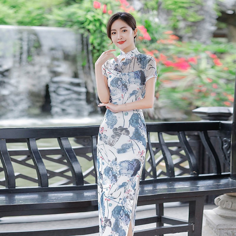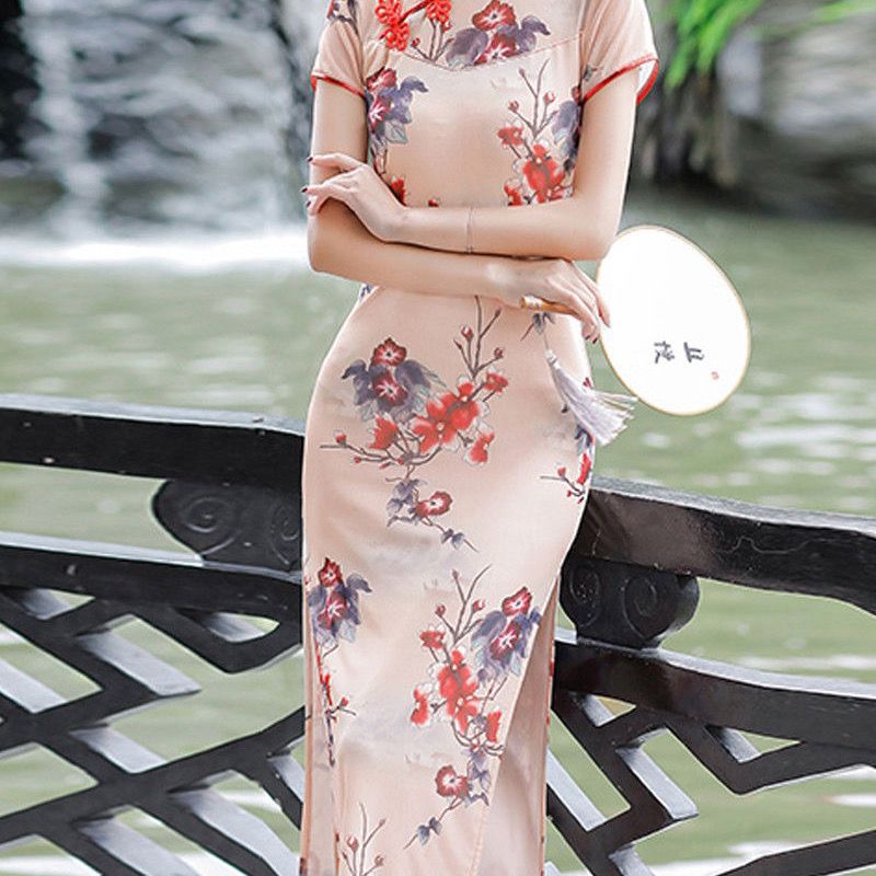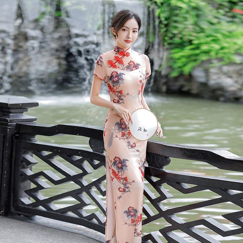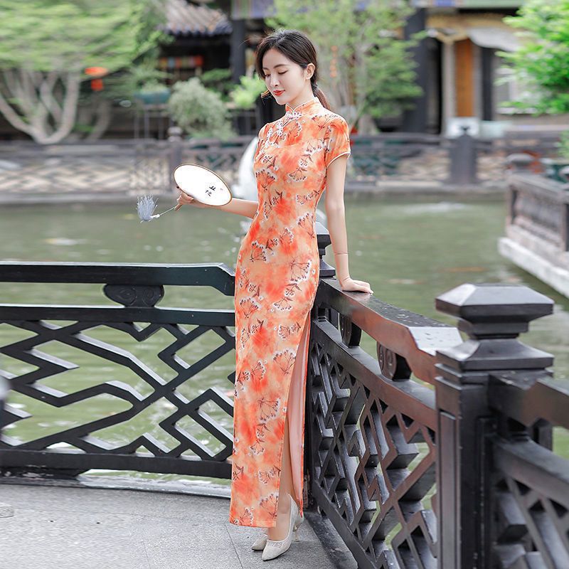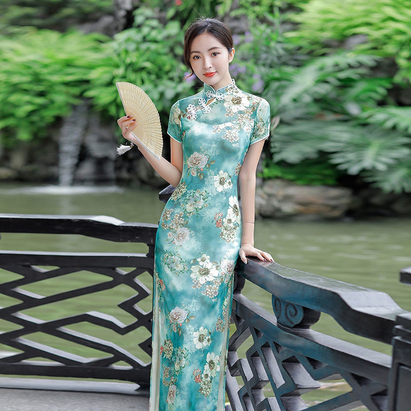 2024 лето новая длинная юбка cheongsam двойной размер ретро улучшенный стройный cheongsam повседневное платье cheongsam
