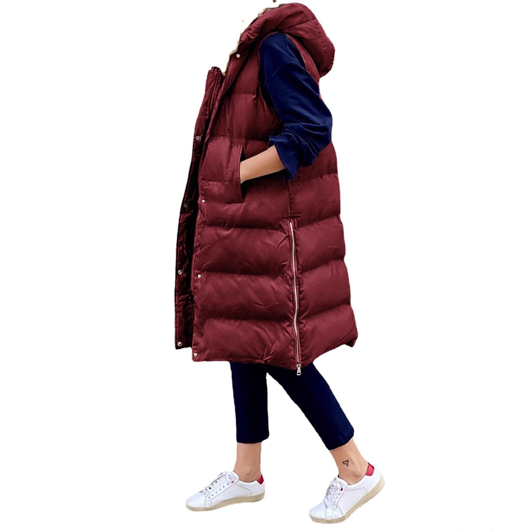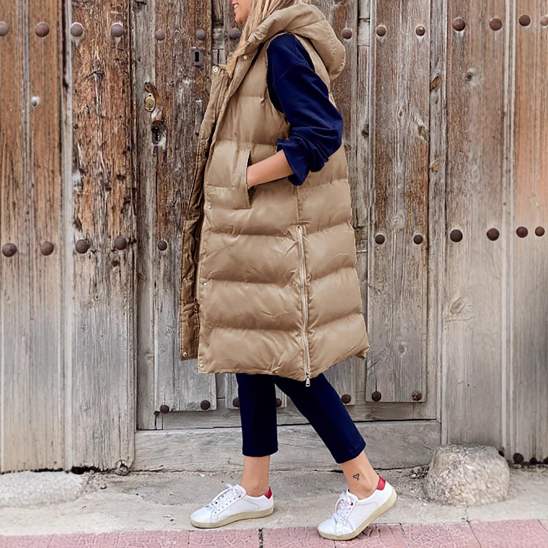 Трансграничная Amazon однотонная длинная куртка с капюшоном и хлопковой подкладкой, жилет, Повседневная модная однобортная куртка без рукавов, женское MJ6587
