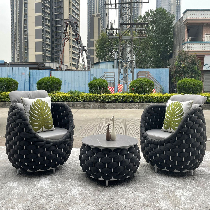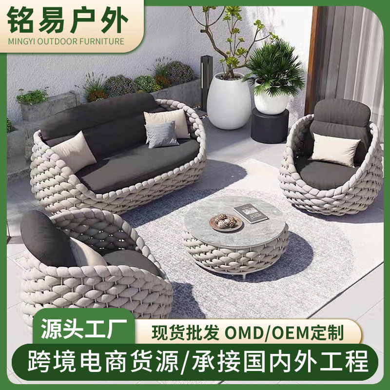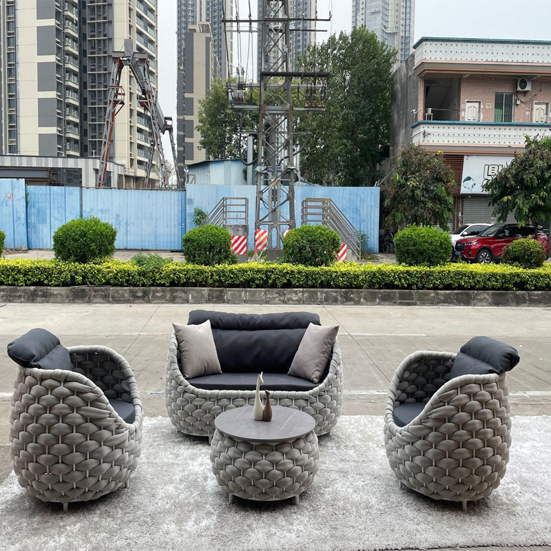 Трехместный комплект садовой мебели из ротанга: диван, кресло и подставка для ног, изготовленный на заказ для трансграничной доставки.