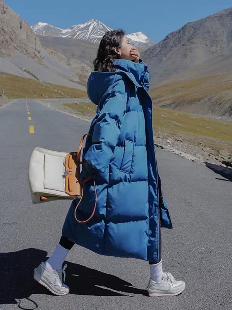 Утолщенная хлопковая верхняя одежда на пуху для женщин, свободная длинная хлопковая верхняя одежда выше колена в корейском стиле, новая зимняя верхняя одежда 2024, трендовая верхняя одежда с хлебом