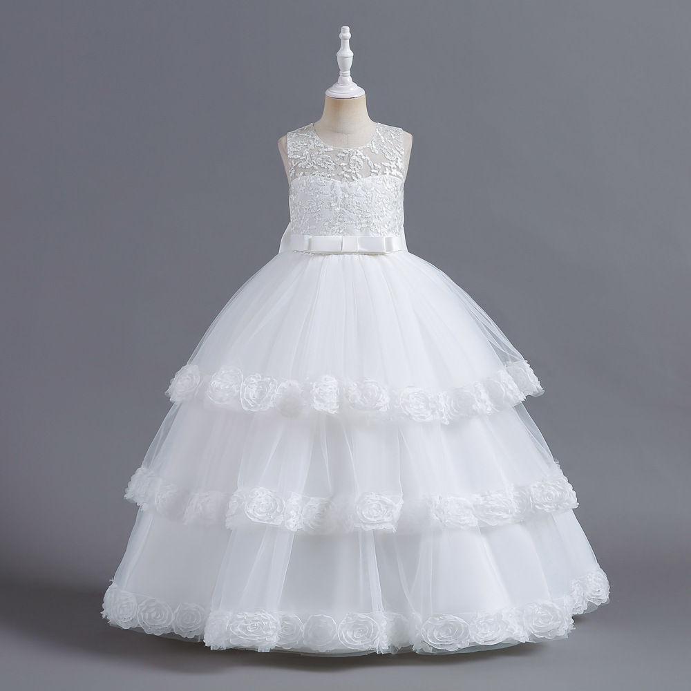 Европейская и американская детская одежда, детское платье, многослойное платье принцессы из пушистой пряжи с цветочным принтом, женское вечернее платье для выступления на фортепиано для девочек-цветочниц