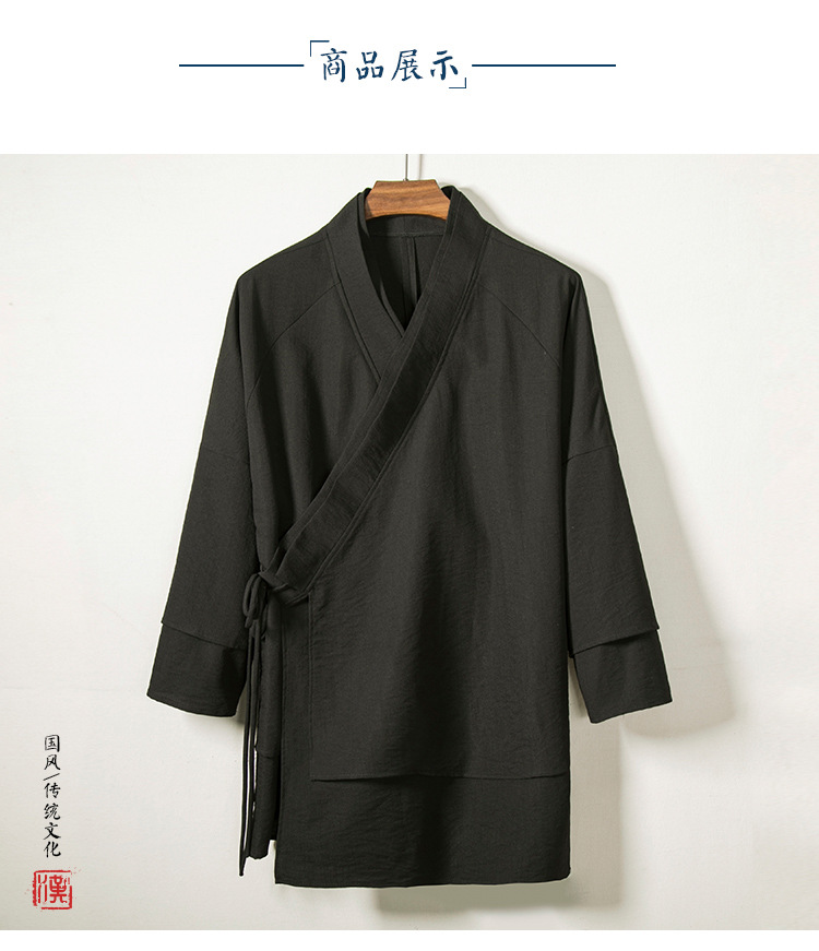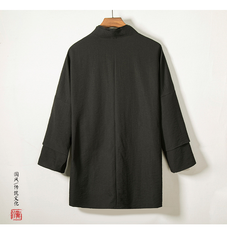 2022 осень и зима Новый китайский стиль мужское хлопковое и льняное однотонное улучшенное ханьфу молодежное Свободное пальто повседневное Мужское пальто