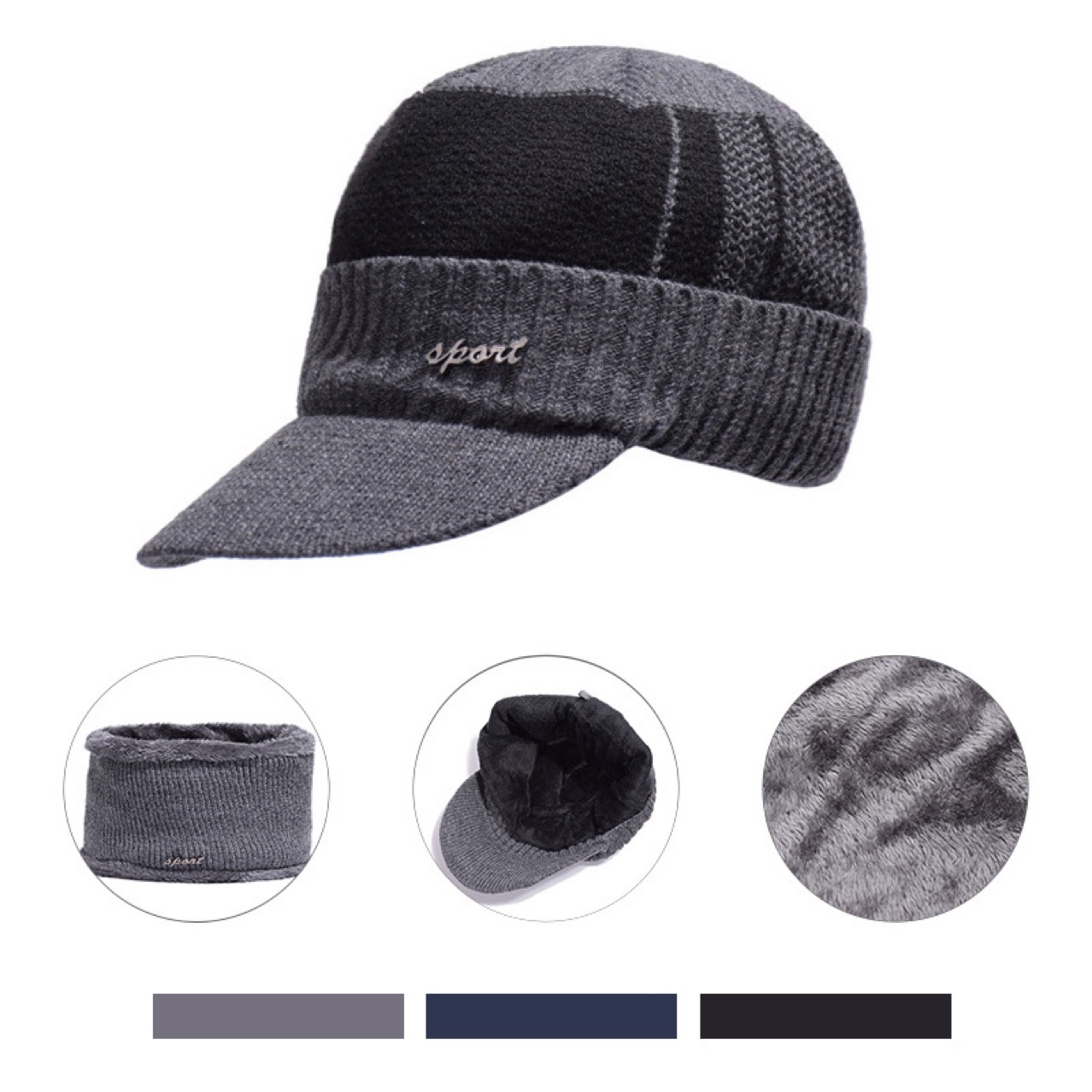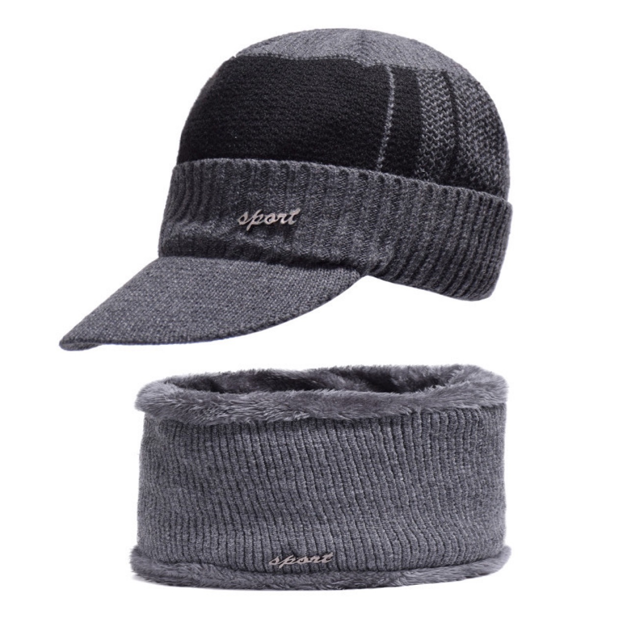 Зимний серый мужской с капюшоном кроличьи ушки Жаккард для взрослых Весна в наличии уши монохромный шарф