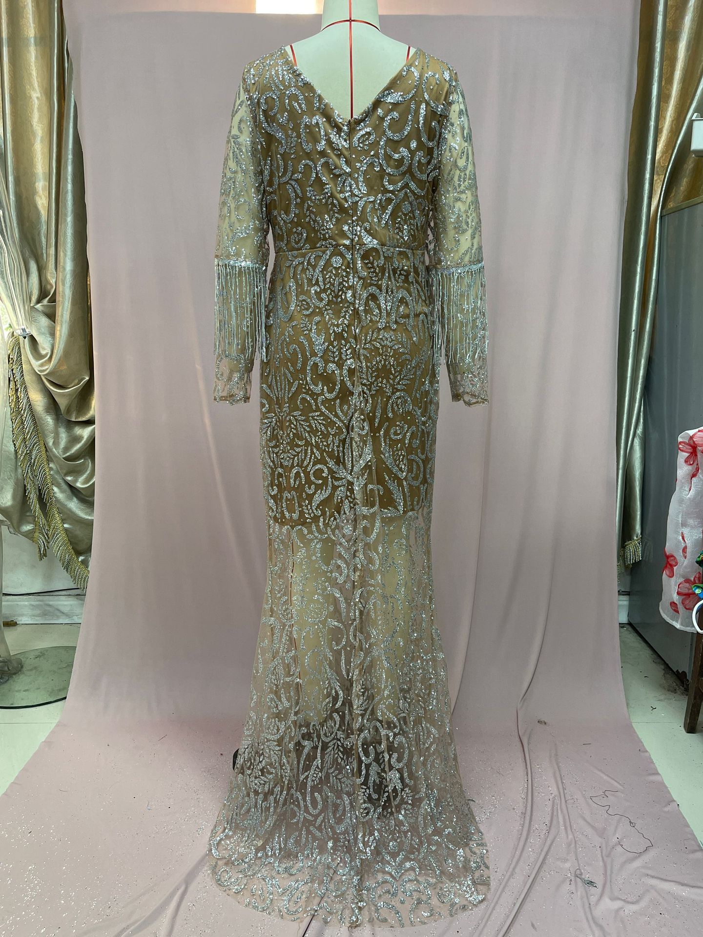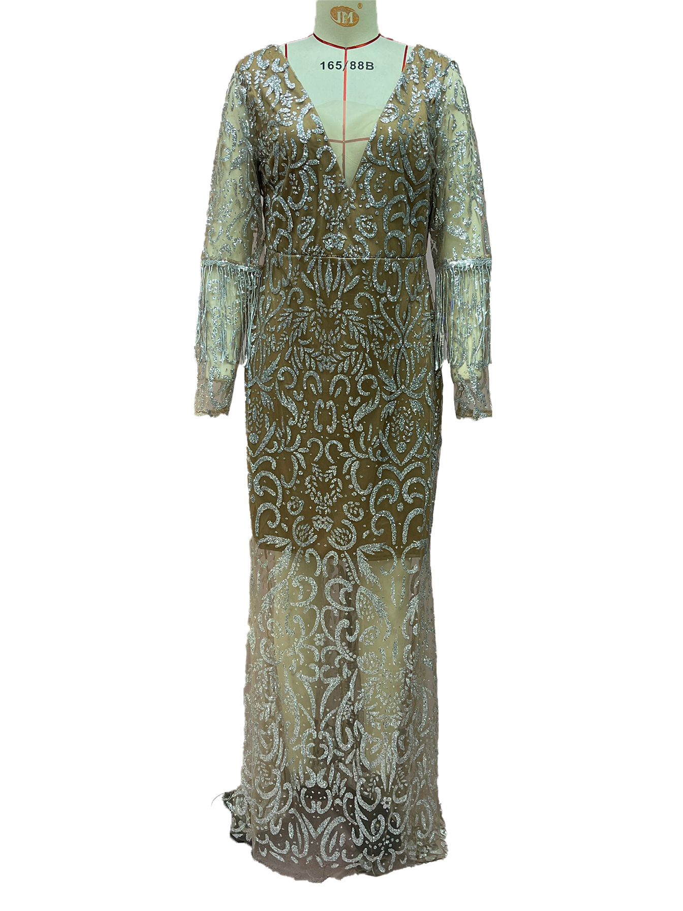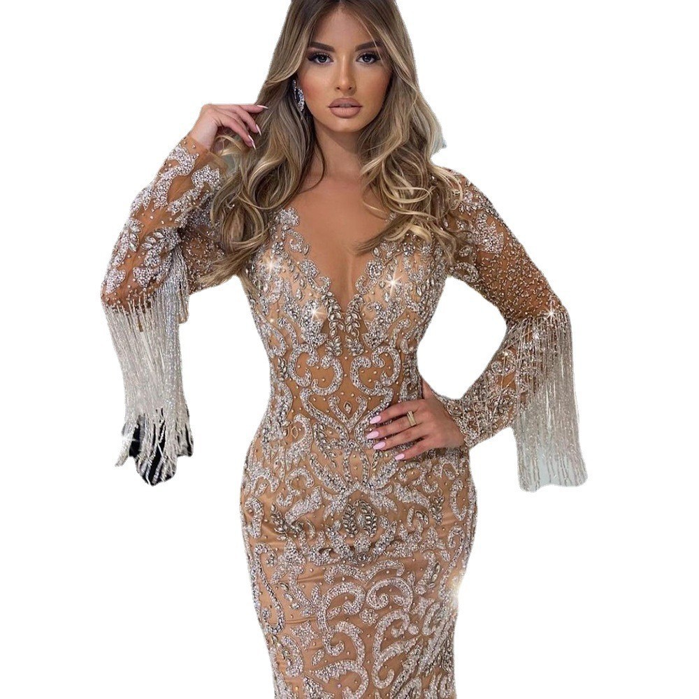 2024, трансграничное весеннее новое европейское и американское вечернее платье, женское платье «рыбий хвост», расшитое золотыми кисточками, элегантное сексуальное платье с длинной юбкой