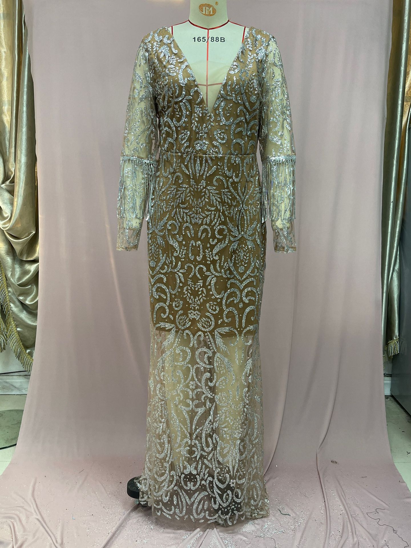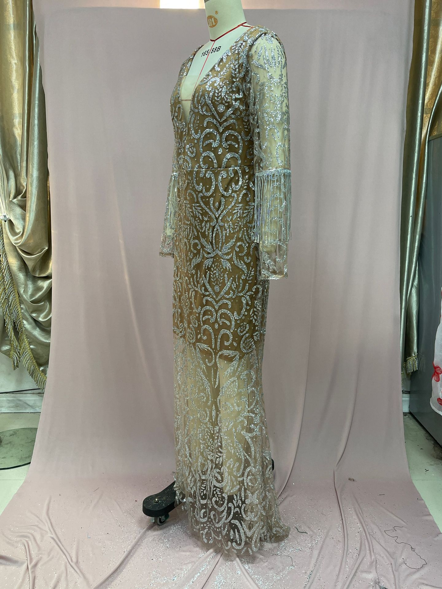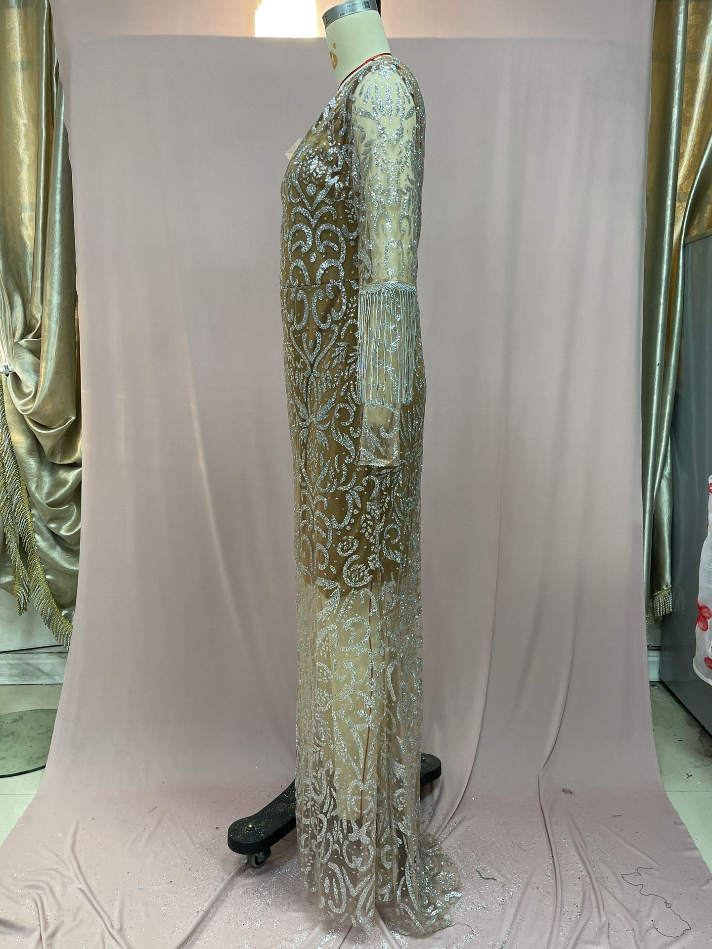 2024, трансграничное весеннее новое европейское и американское вечернее платье, женское платье «рыбий хвост», расшитое золотыми кисточками, элегантное сексуальное платье с длинной юбкой