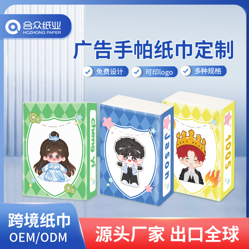 Индивидуальные английские бумажные платочки в портативной упаковке для рекламы и промоакций, изготовление бумажных платочков на заказ.
