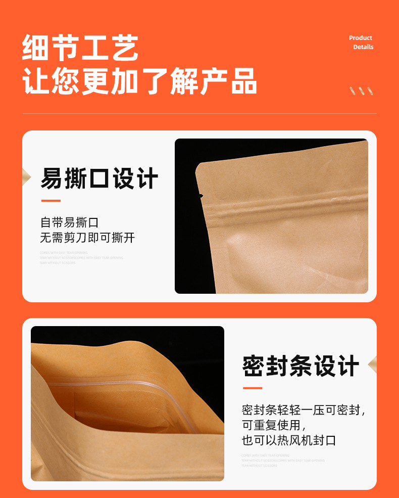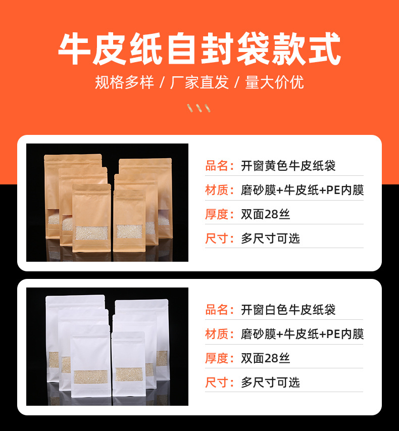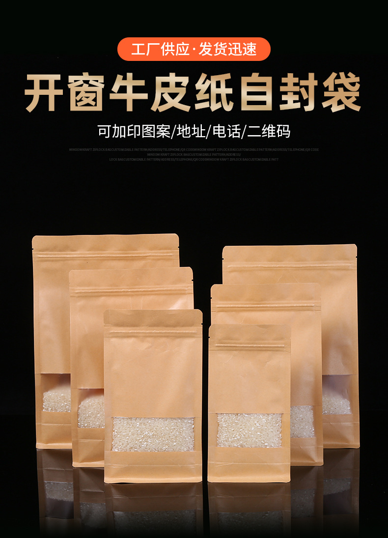 Само-запечатывание открытое окно Крафт бумажный мешок еда чай печать карман сухофрукт рис ЗАГЕРМЕТИЗИРОВАННАЯ закуска упаковывая сумку оптом
