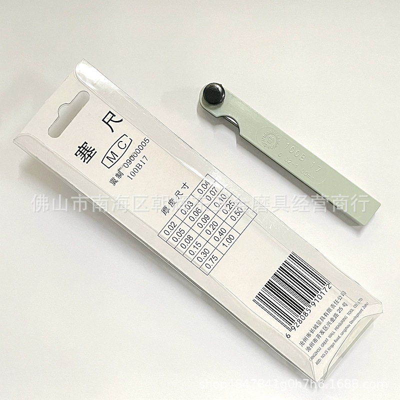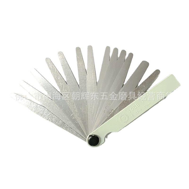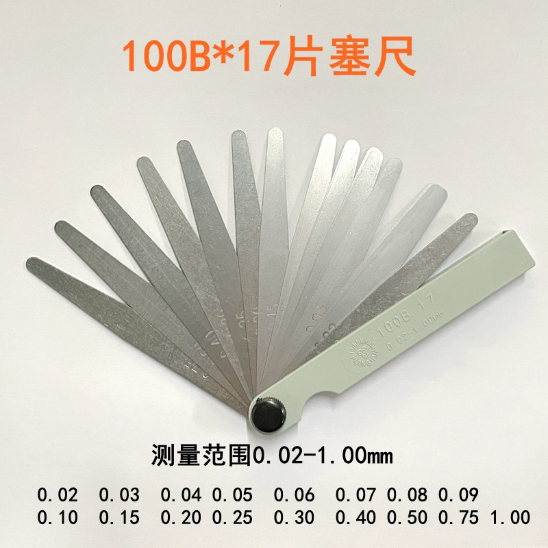 塞尺介绍:测量间隙的薄片量尺,由一组具有不同厚度级差的薄钢片组成的量规(见图)。塞尺用于测量间隙尺寸。在检验被测尺寸是否合格时,可以用通止法判断,也可由检验者根据塞尺与被测表面配合的松紧程度来判断。塞尺一般用不锈钢制造,最薄的为0.02毫米,最厚的为3毫米。自0.02~0.1毫米间,各钢片厚度级差为0.01毫米;自0.1~1毫米间,各钢片的厚度级差一般为0.05毫米;自1毫米以上,钢片的厚度级差为1毫米。。
