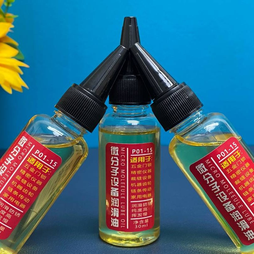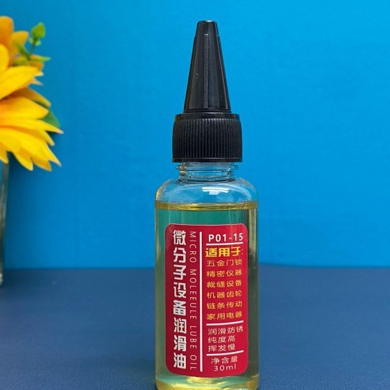Микромолекулярное смазочное средство для бытового использования: моторное масло, смазка для замков дверей, антикоррозийное смазочное средство для механических деталей, подшипников вентиляторов, цепей, швейных машин и фурнитуры.