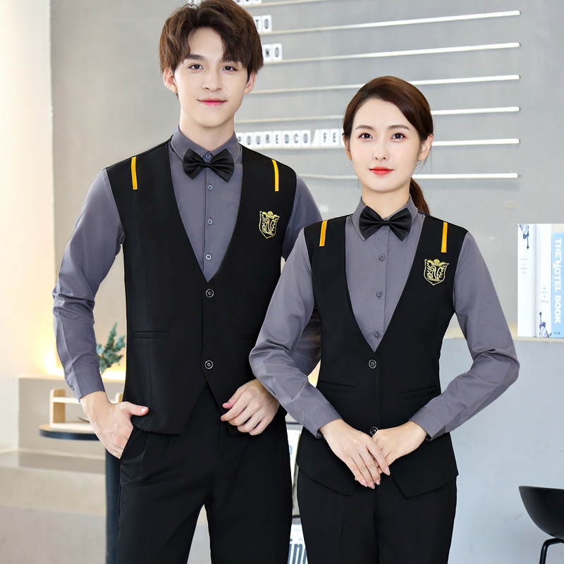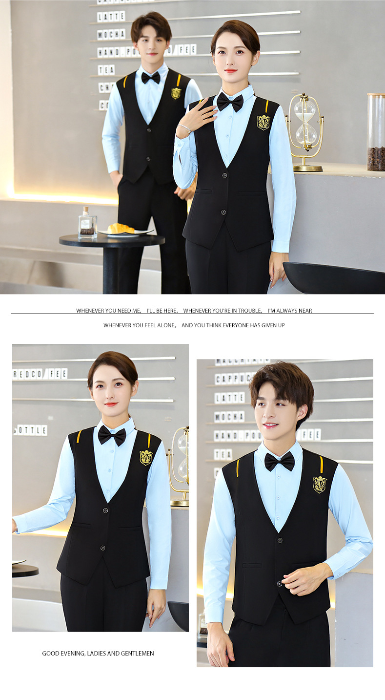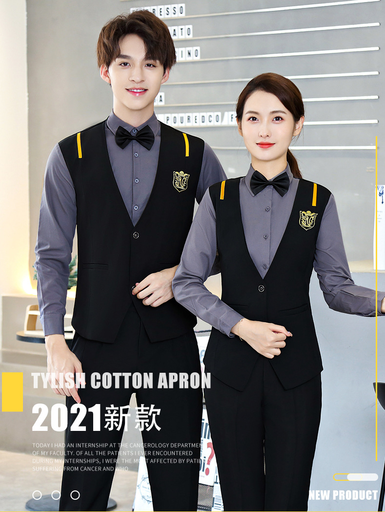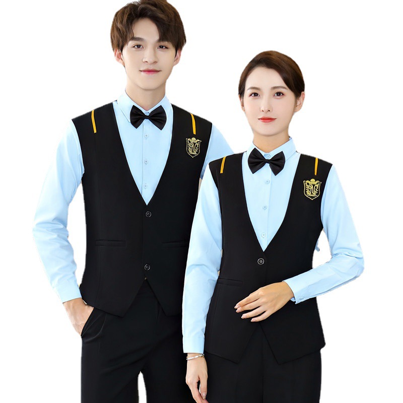 Поддельный жилет из двух частей, мужской и женский кофейный западный ресторан, гостиничный инструмент, бар, KTV, рабочая одежда для официанта, с длинным рукавом