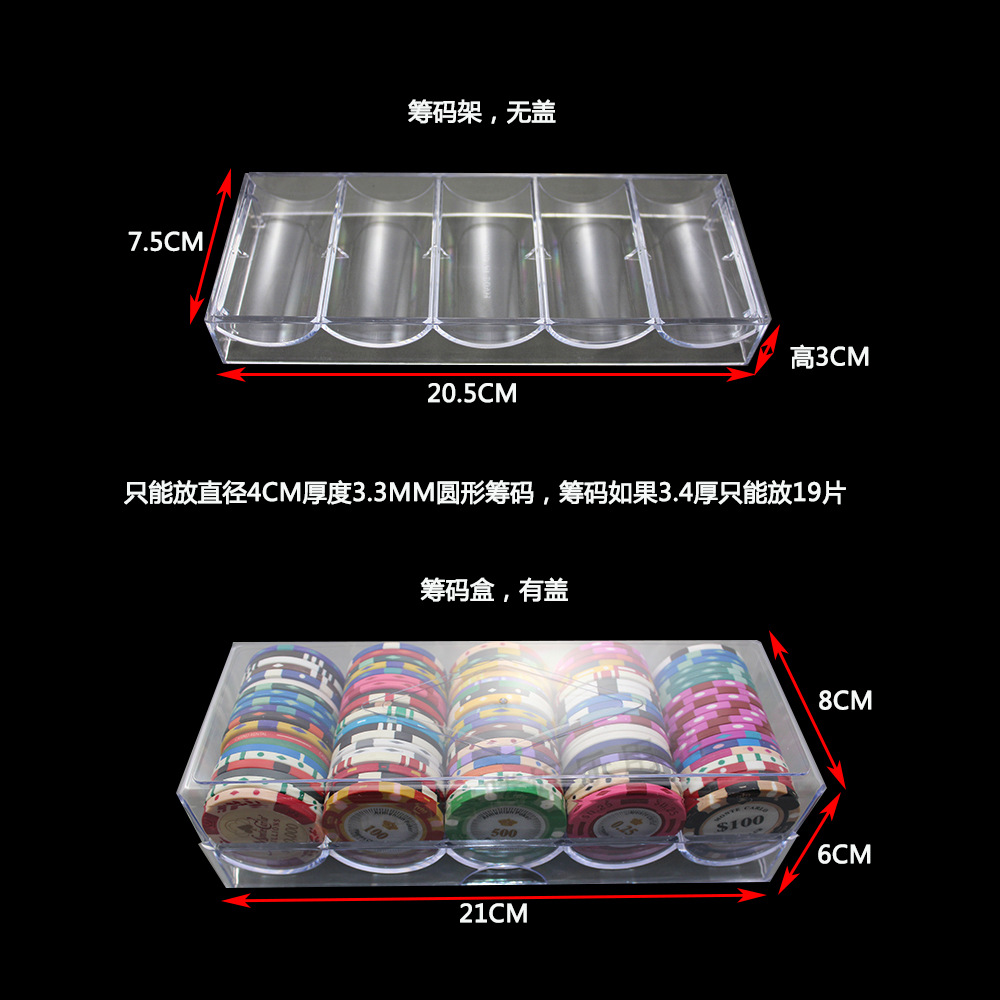 100码筹码架,筹码盒,每格放20PC。共5格,可以放40直径的筹码,分有盖和无盖